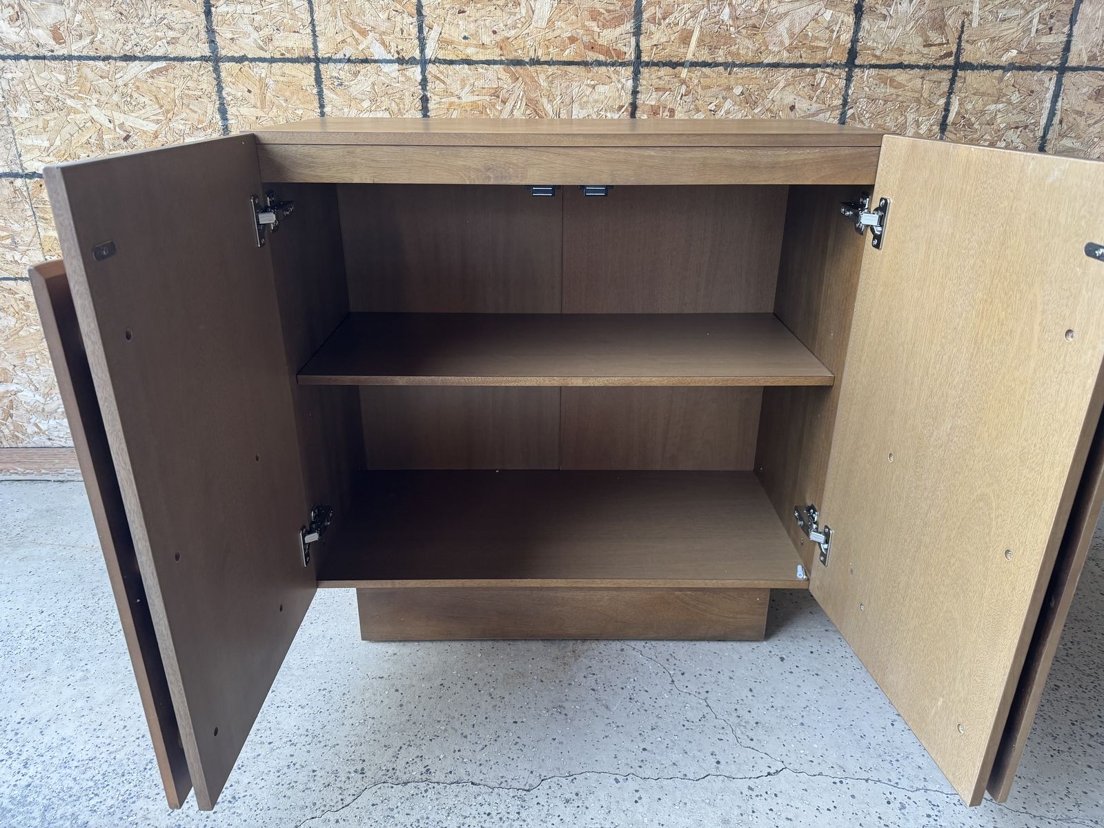 VenmoAlready assembled! Skip the assembly and the shipping wait! I have a brand new Nathan James Wood Mid-Century Arched Storage Cabinet in Light Brown. This is a best-seller known for its unique arch door design and sleek, modern aesthetic. I have already unboxed and professionally built this piece, so it is sturdy and ready to go straight into your home. It has never been used—I simply assembled it to save the next owner the 1-2 hours of setup time. Features: • Style: Mid-Century Modern / Scandi-Boho. • Design: Unique arched front doors with magnetic closures. • Storage: Spacious interior with adjustable shelving, perfect for a bar cabinet, entryway console, or office storage. • Finish: Beautiful Light Brown wood grain that fits almost any decor. • Condition: Brand New / Fully Assembled. Dimensions: • Width: 31 • Depth: 16 • Height: 32”