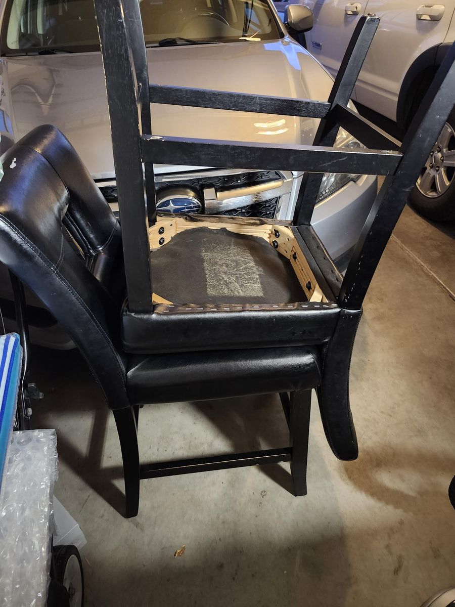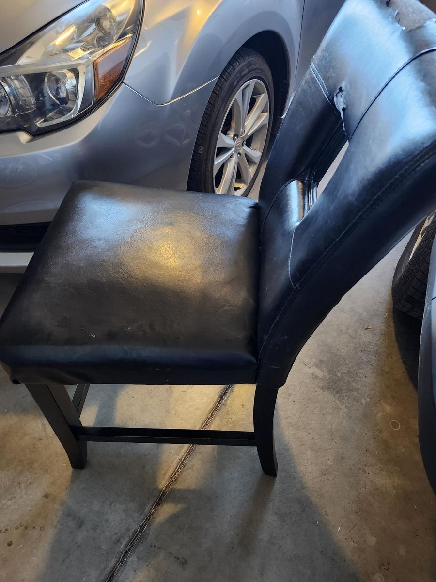 Two well used barstools with good frames. One needs a new spring and they both have some separation on the faux leather. Could be nice chairs for a little work. Come get them; and they are free.