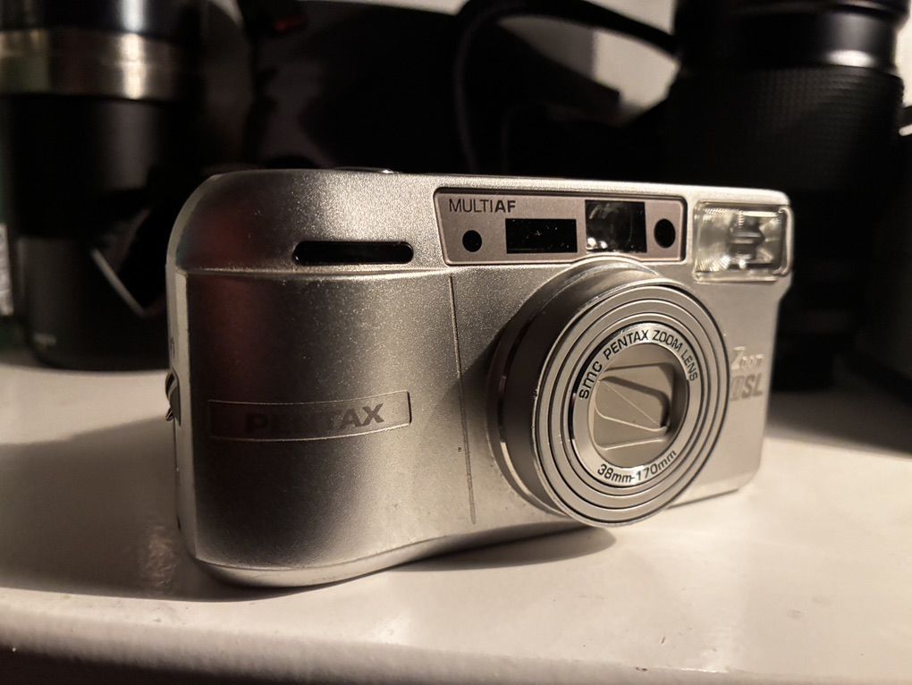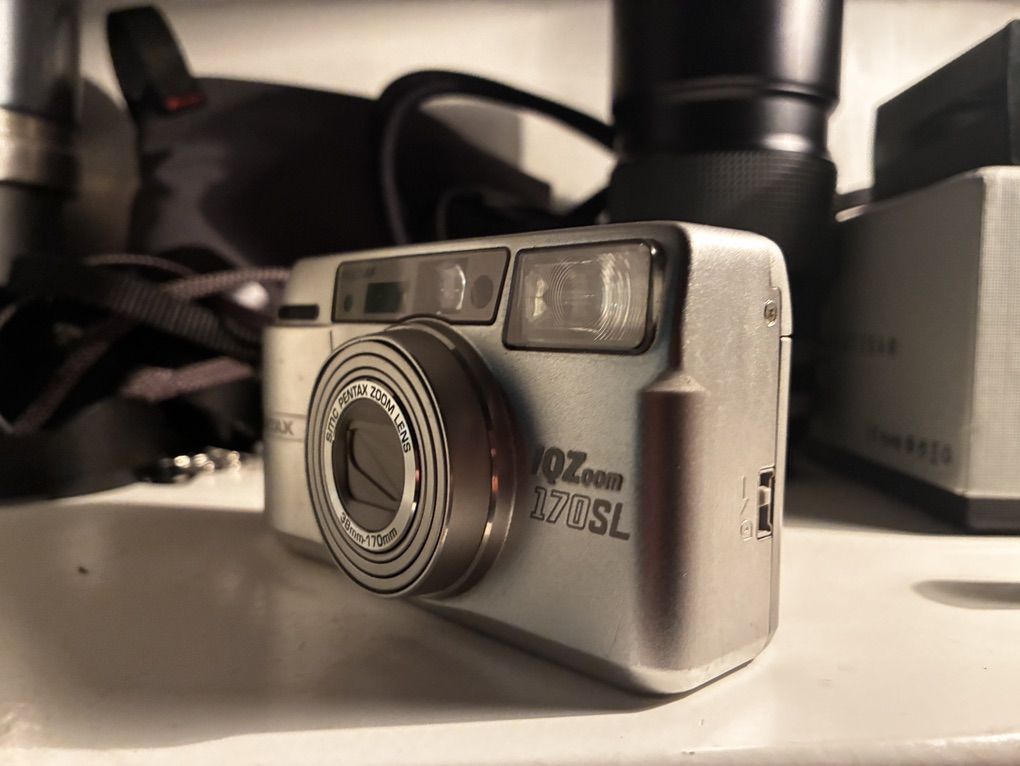 CashApp$100 open to reasonable offers Serious interest pls. Just about as small as you can get with film point and shoot cameras and this being in the last decade of the film camera era they really had refined and perfected the technology and functionality with form and quality. This Pentax 170 iqz or Espio in other countries is not going to disappoint you nor will it take up any space in your bag a perfect everyday carry camera with a 38-170 mm zoom lens that’s sharp with auto wind AF flash panorama mode bulb mode date and zone focusing and more in a size not much larger than the roll of film it takes you’ll be very pleased with its results! Great condition solid and quality build and great grip ergonomics includes leather case, lanyard, and manual with its original receipt from 2003 which costed $268 then. Needs one cr2 battery and she’s ready for shooting! Fcfs or Venmo to hold I can meet in Slc and live in Farmington.