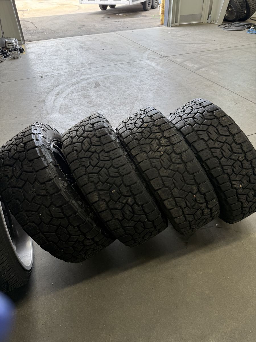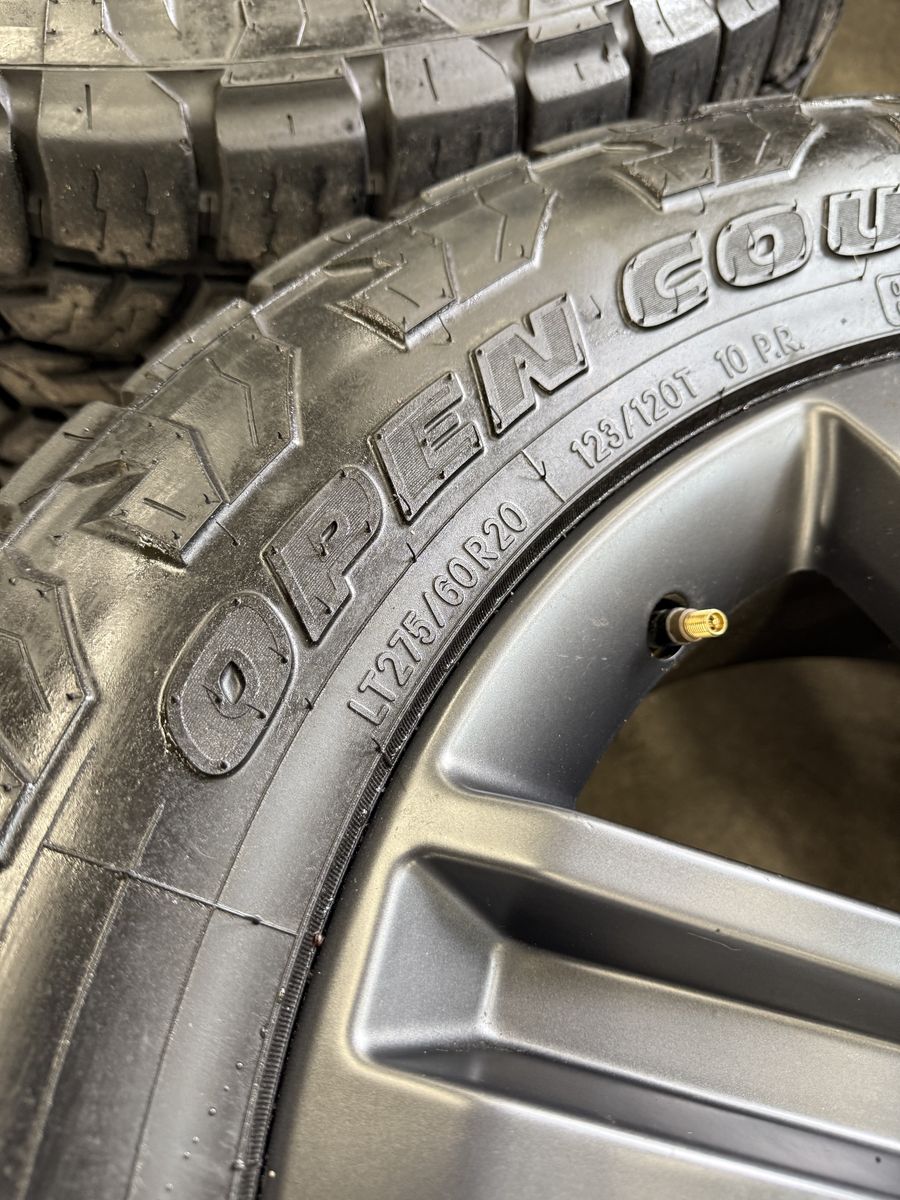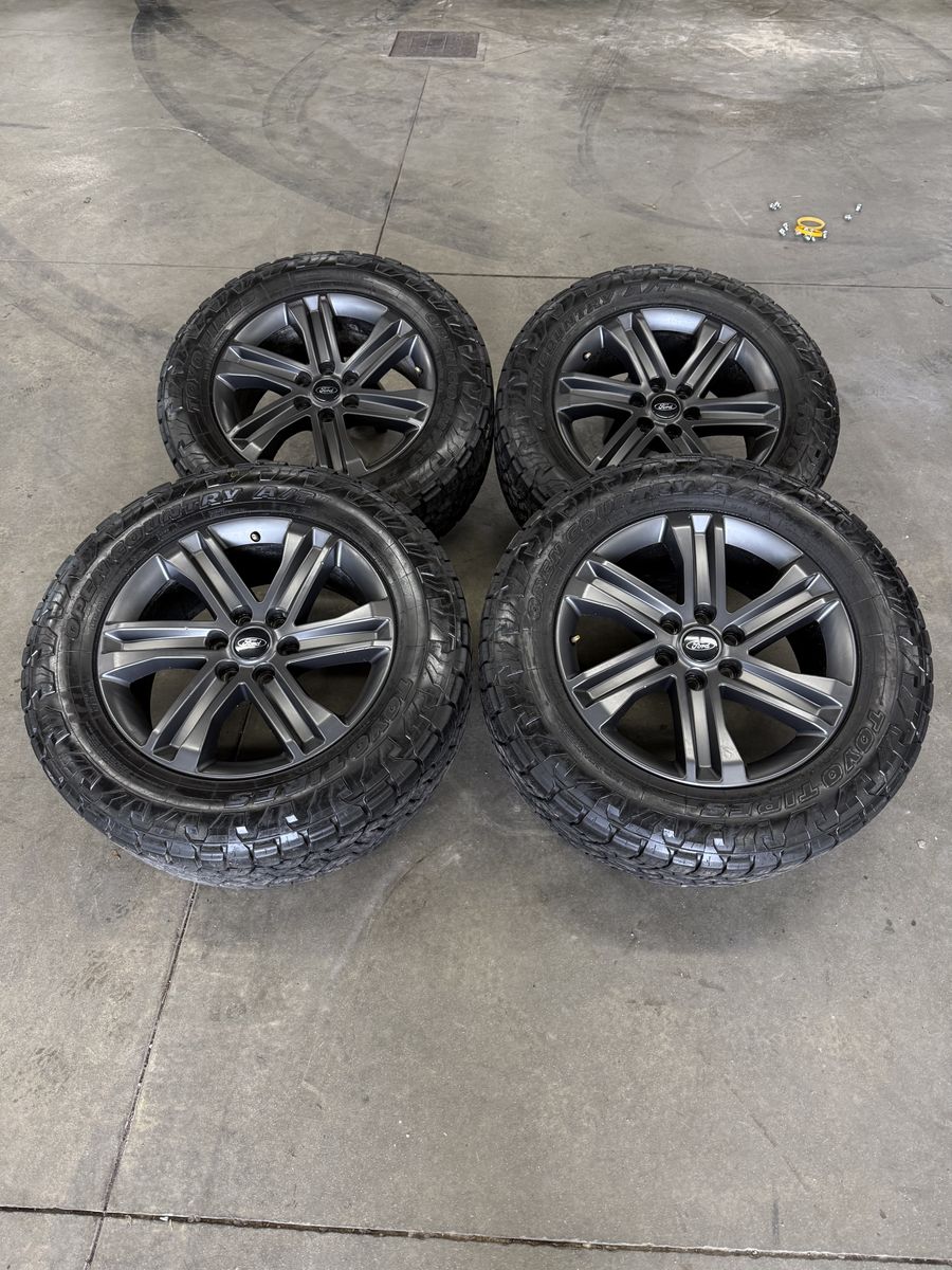 Wheels are 20in OEM wheels off a 2023 ford f150 performance package. Wheels are in great shape, no curb rash, dings or major damage on them, other then average wear they are in like new shape. All of the center caps are also included and in perfect shape as well. Tires are 275/60/20 Toyo open country at3, load range E, top of the line tires, no patches or plugs in them. Tires have about 70-75% tread life left.