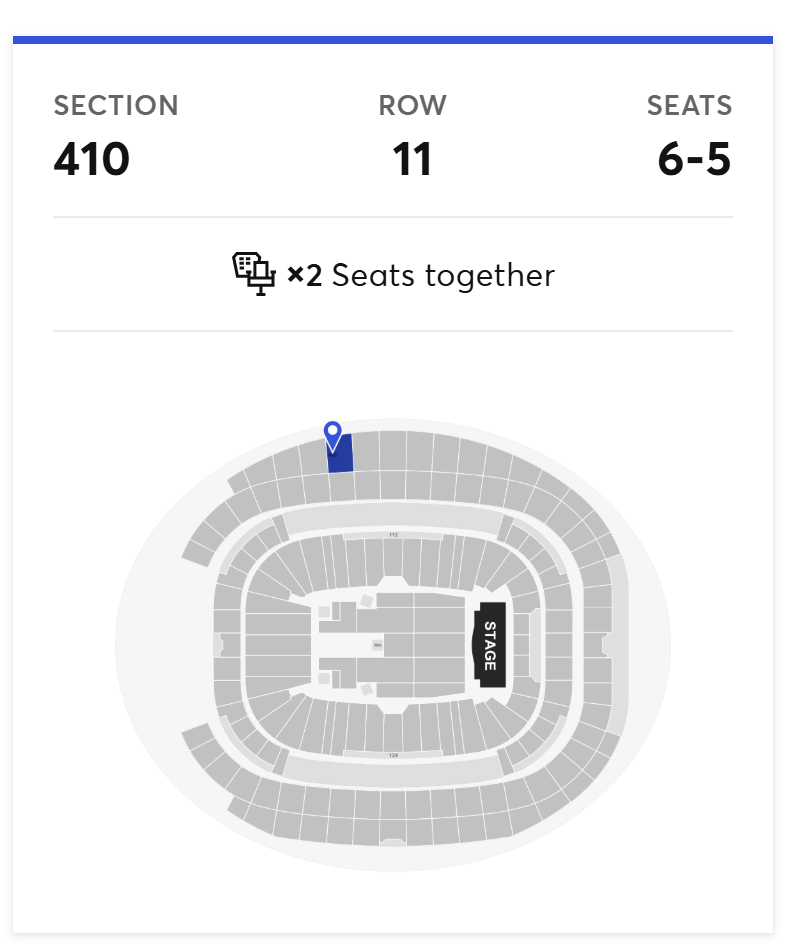 ApplePaySelling 2 Bruno Mars Tickets together for April 10th in Las Vegas. Total: $590 ($295 each) Section: 410, Row: 11, Seats: 5 & 6