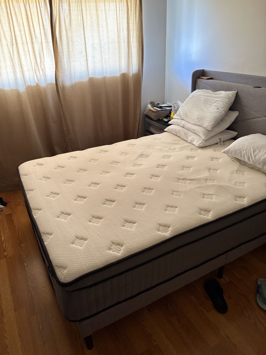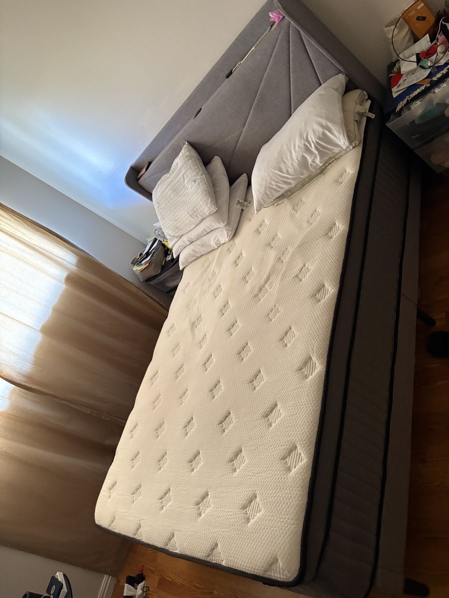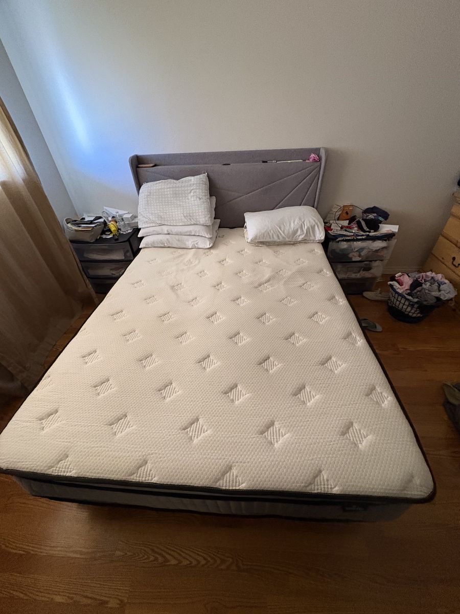 Feonase Base de cama Queen con puertos tipo C y USB, base de cama tapizada con cabecera de almacenamiento con respaldo de ala, soporte de listones de madera maciza, no necesita somier, sin ruido, gris, colchón queen. URGENTE por mudanza