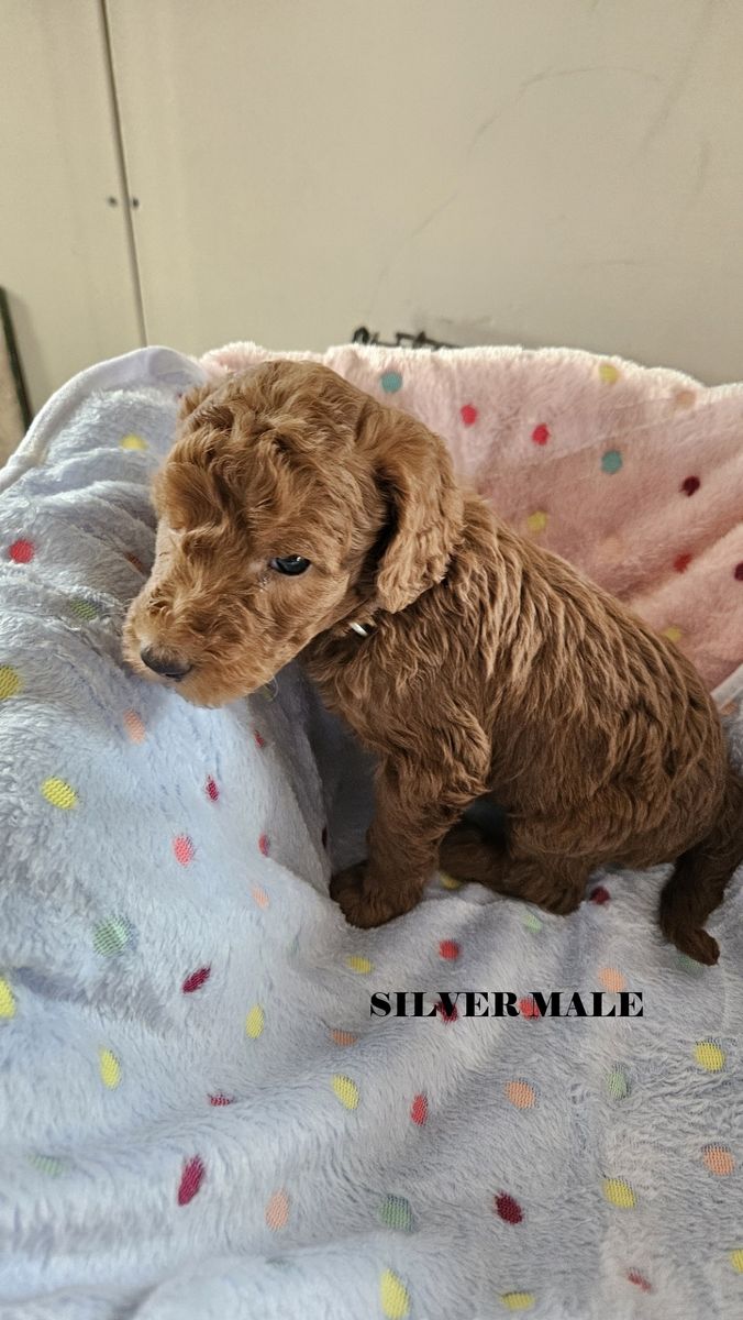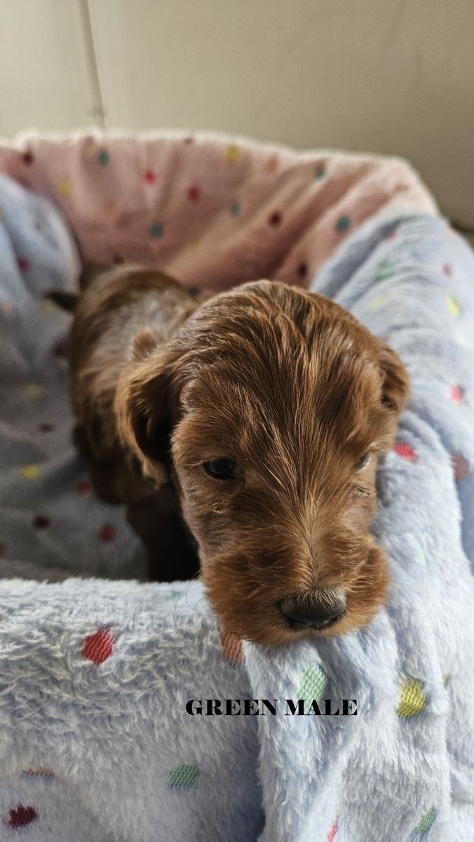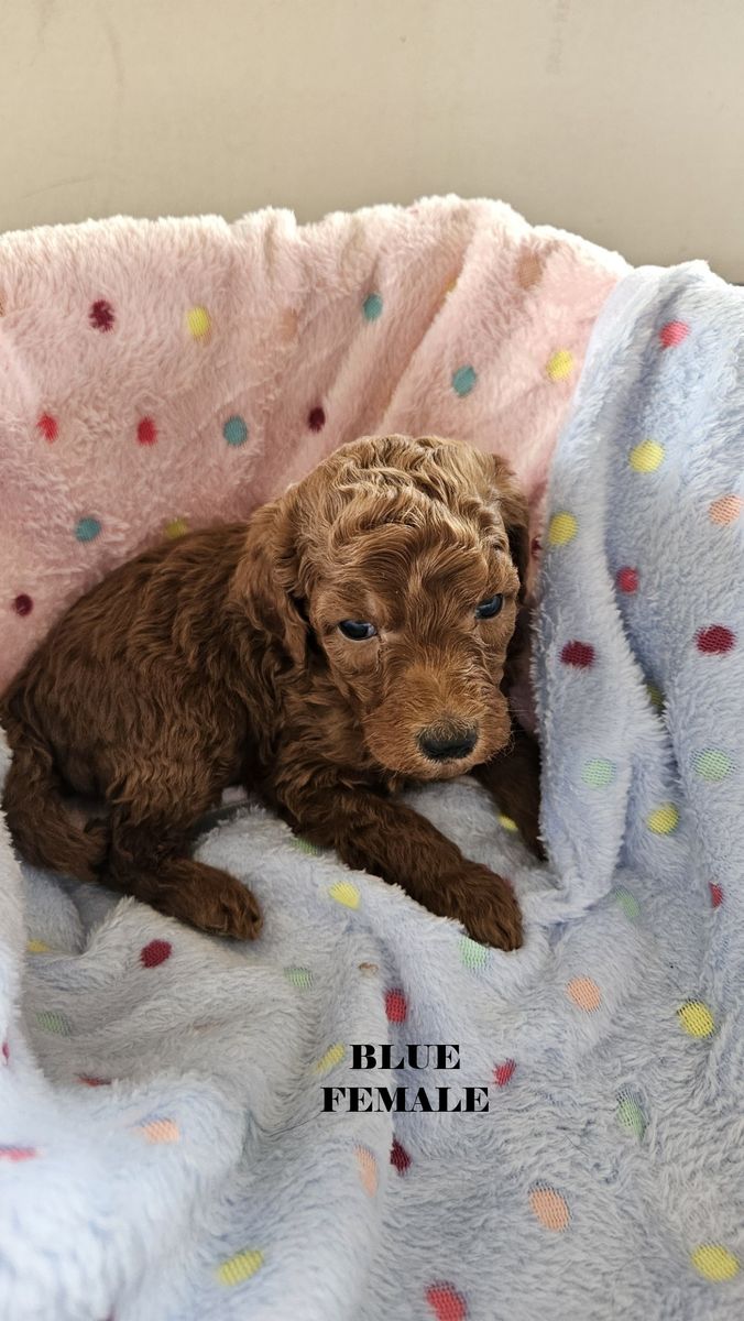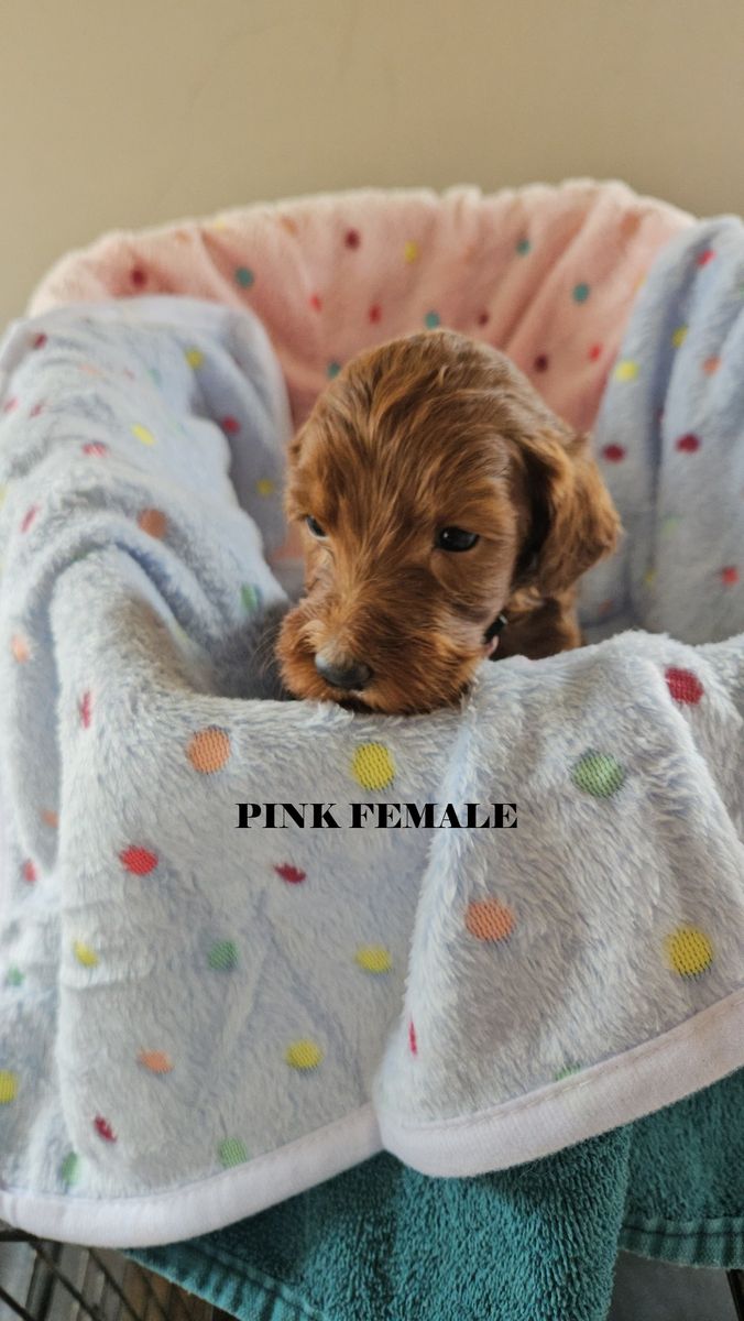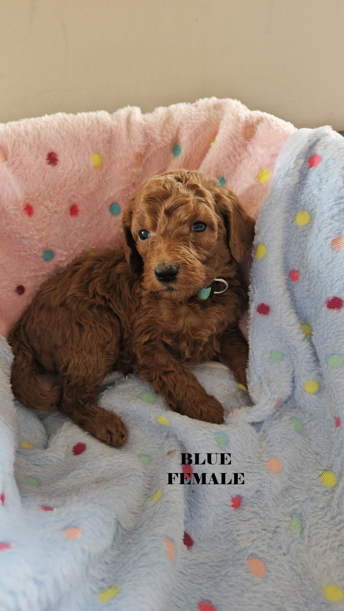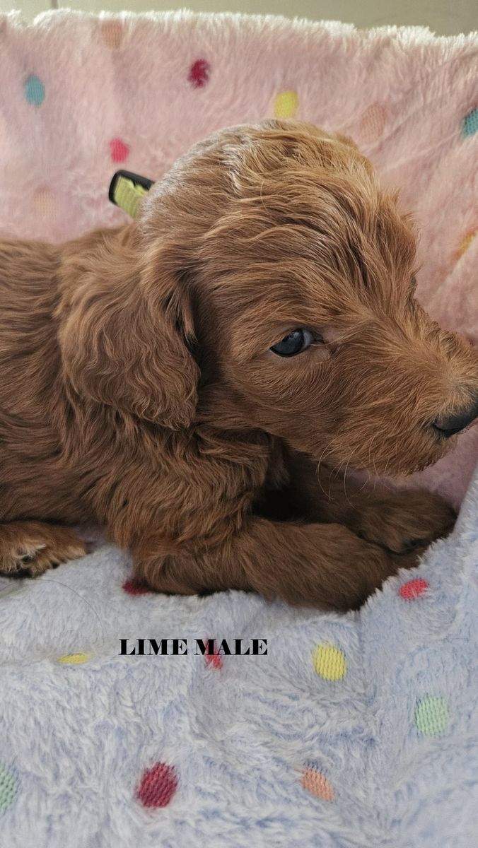 ZelleHello! We have a beautiful litter of 6 f1bb red goldendoodles that will be ready for their forever homes after April 21. Mom is a beautiful standard deep red f1b goldendoodle and Dad is a standard red papered poodle (Their photos are the last two in the series). These pups will be standard size probably between 40-50 lbs There are two females and 4 males in this litter. We require a $100 deposit to reserve a puppy. You can visit them after their 6 week vet appointment. We maintain a Google Album for photos and videos. Please request a link for that via sms or in the KSL app. We prefer sms texting because it is more reliable and flexible but the app is okay too. Collars are the following Silver - (male) Lime - (male) Green - (male) White - (male) Pink - (female) Blue - (female)