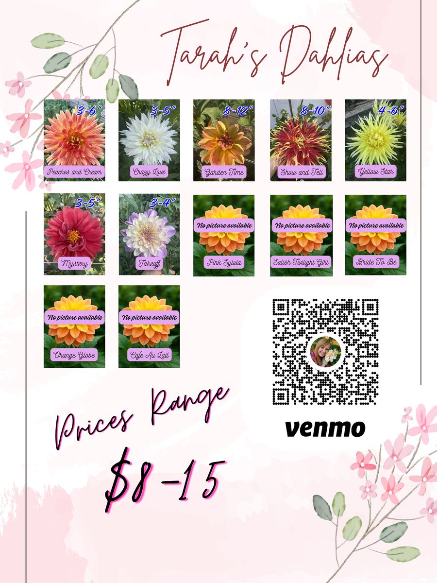 My wife is wild about Dahlia’s. If you don’t know dahlias grow from a tuber similar to a potato. She’s stored them over the winter and has an overstock that she’s selling for a great price! Most of these are $8. These sell for 30+ from most professional growers and you know you’re getting quality hand picked items. Message me and I’ll get you in touch with her.