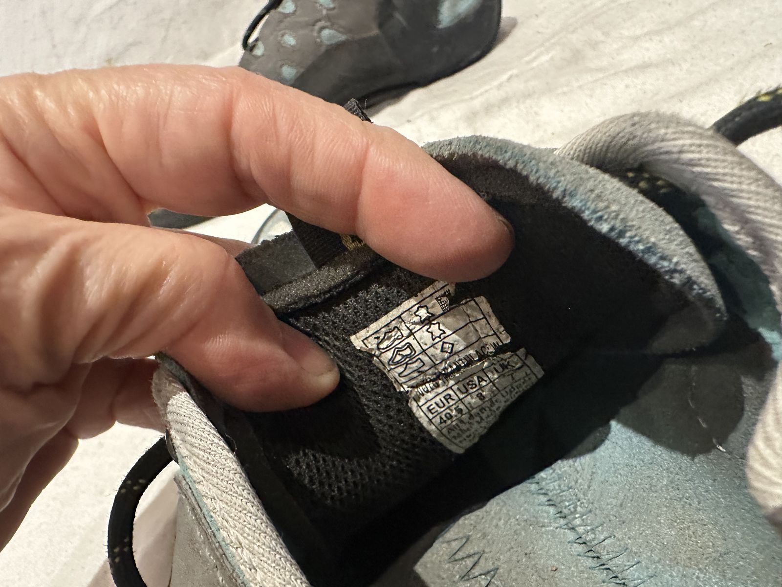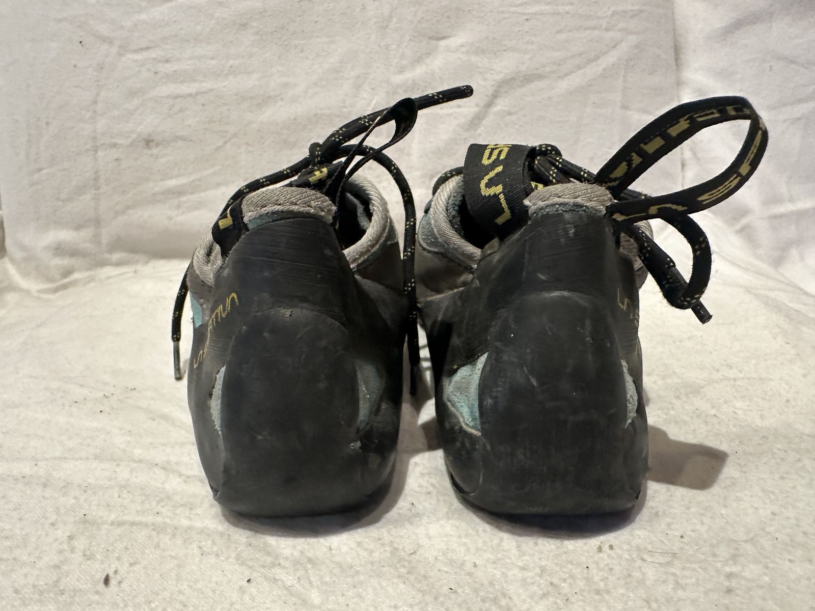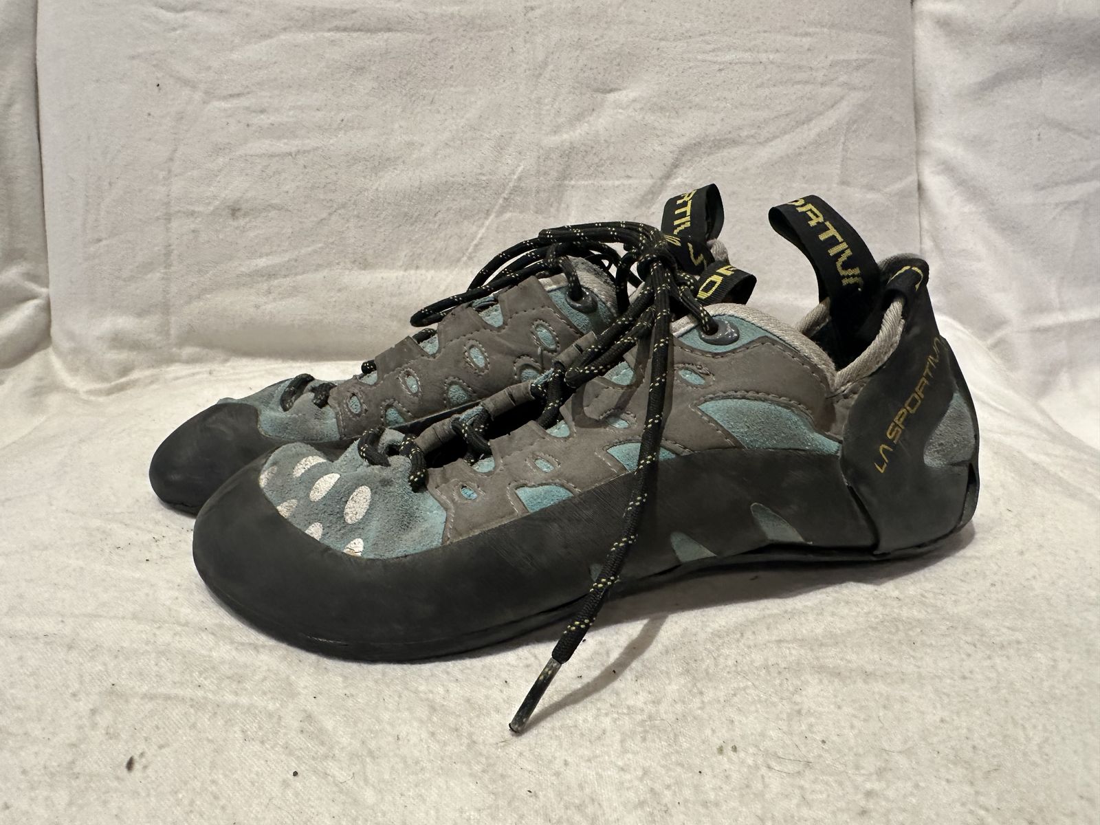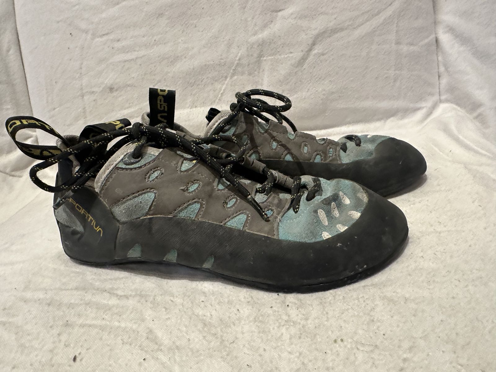 LaSportiva tarantula men’s size 8 or women’s 9 or EU 40.5 blue/gray lace up climbing shoes. These are dirty. See photos for details. I take cash or Venmo, but cash is preferred. Text is best. 801-201-4446. Check out my other ads for additional sizes and styles.
