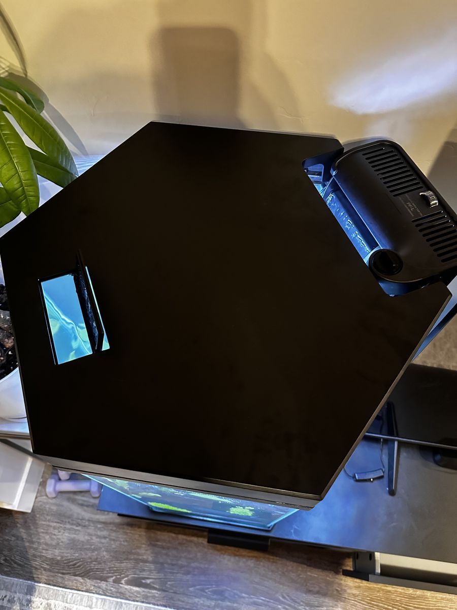 VenmoThis tank is pretty new and so is the filter + heater. It’s super cool with a 360 view and tall glass walls. Comes with led lights in the lid and food door on top. Inside of the tank we have live plants that are fully aquatic and have been thriving with the soil ground put in the tank. We also have some fake colorful plants not included in these pics and obviously fish if interested.