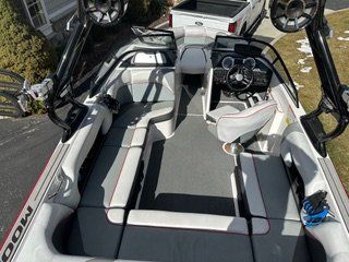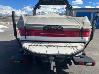 22-foot, high-performance v-drive wake boat designed for versatility, featuring the Raptor 6.2L engine by Indmar, 3,000 lbs of ballast, and Flow 2.0/3.0 Surf Systems. Spacious 15-person capacity, a convertible rear seat, and strong, customizable waves for wakesurfing and wakeboarding.