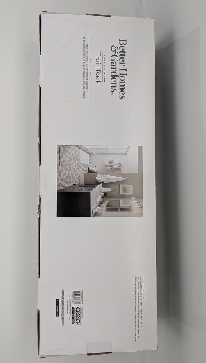 GooglePayNEW The Better Homes & Gardens Chandler Chrome Finish 24" Towel Train Rack is a modern and stylish addition to any bathroom. It features a 24" double towel bar, a long-lasting chrome finish, and a durable mounting system made of sturdy materials like chrome and zinc die-cast. The sleek design and smooth surface make it a perfect upgrade for your bathroom space. With its wall-mounted installation, this towel rack is both practical and elegant, adding a touch of sophistication to your home decor. Key Features & Specifications: