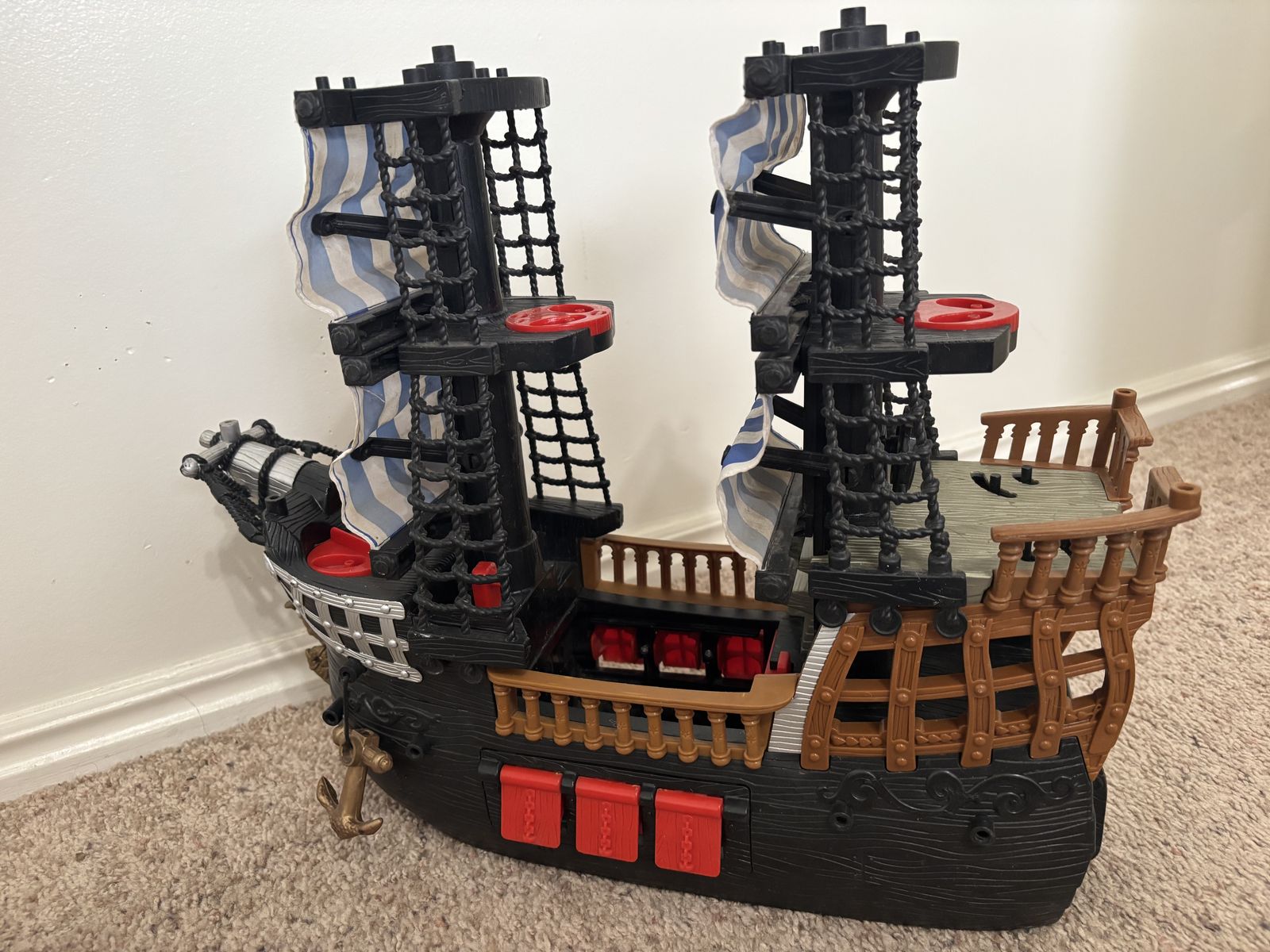 Fisher-Price Imaginext Black & Red Pirate Ship & Imaginext Billy Bones Pirate Ship Skull Skeleton Hands 2015 Mattel Fisher Price No advance payment Payment and pick up are at the same time.