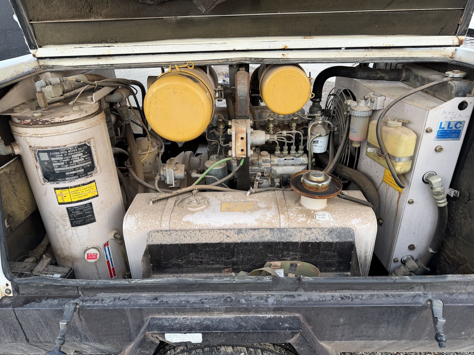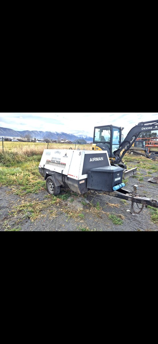 GooglePayUp for sale or for rent is a 1993 airman 185cfm air compressor, this unit has been fantastic and pushes good air. It has 3 ports with one having an air tool oiler. Sale comes with jackhammers and hose. Tires are new, machine runs great.