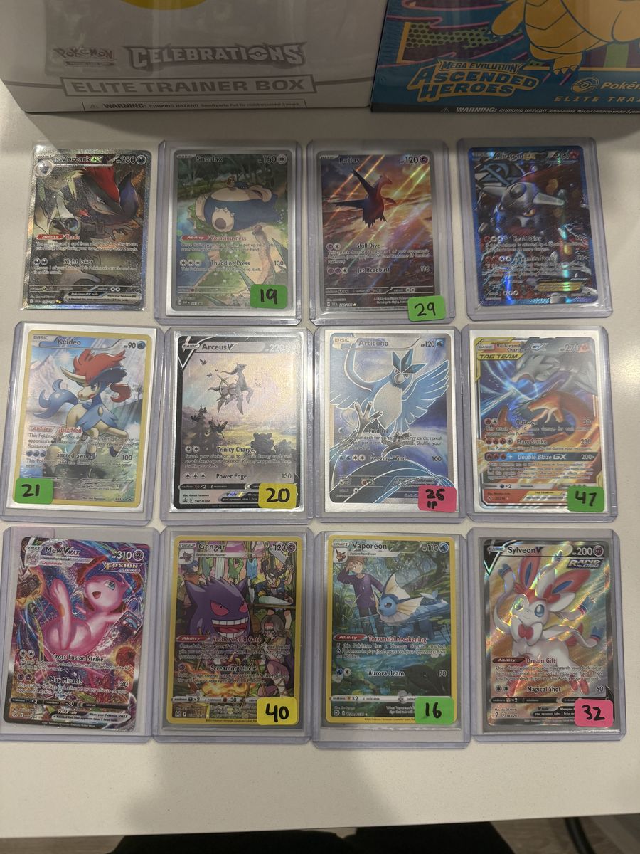 $51 n zoroark $19 snorlax 151 promo $29 latios $21 keldeo $20 Arceus $25 articuno $47 Charizard & reshiram tag team $49 heatran ex $180 mew vmax $40 gengar $16 Vaporeon $32 sylveon