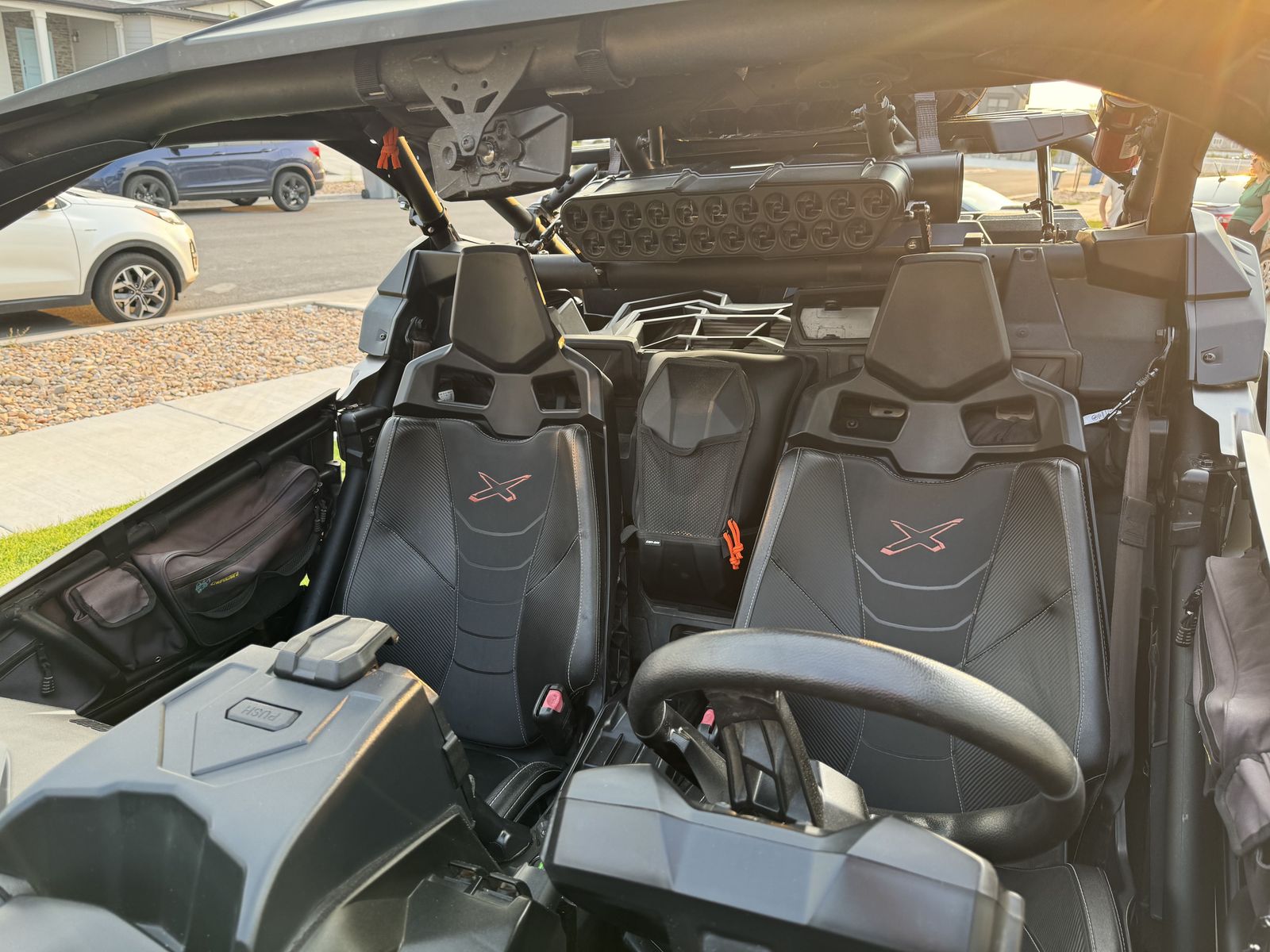 ApplePay• 3,300 miles • 5 new mounted tires. • street legal kit (installed) • full roof • full vented windshield • tinted front wind deflector • spare tire mount • rear lockable storage/ tool trunk • full door panels • rear view mirrors • fender flares front & rear • fire extinguisher & mount • safety flag mount • enclosed dash console w/phone, tablet holder, usb charging outlet • accessory-mounted bags: overhead map/ document bag, driver & passenger 3-panel door bags, shoulder center console storage bag. • new spare drive belt • noise-reducing air intake kit • air intake particle separator (needs repair). • Aluminum billet rear chassis brace/tow hook • billet door handle latches • double shear front suspension kit (new, not installed)