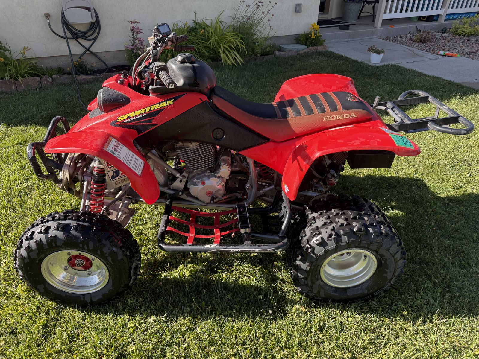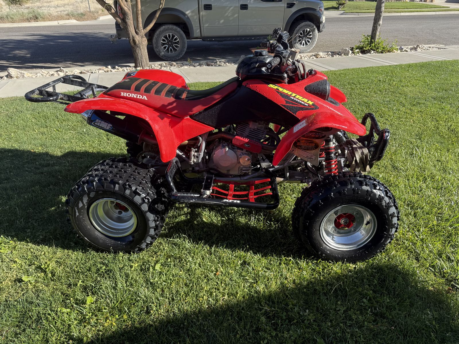 This here is a 2003 Honda 400EX that’s been modified more times than your step mom’s undercarriage. It’s loud, fast, and has more attitude than a bull that just heard banjo music.