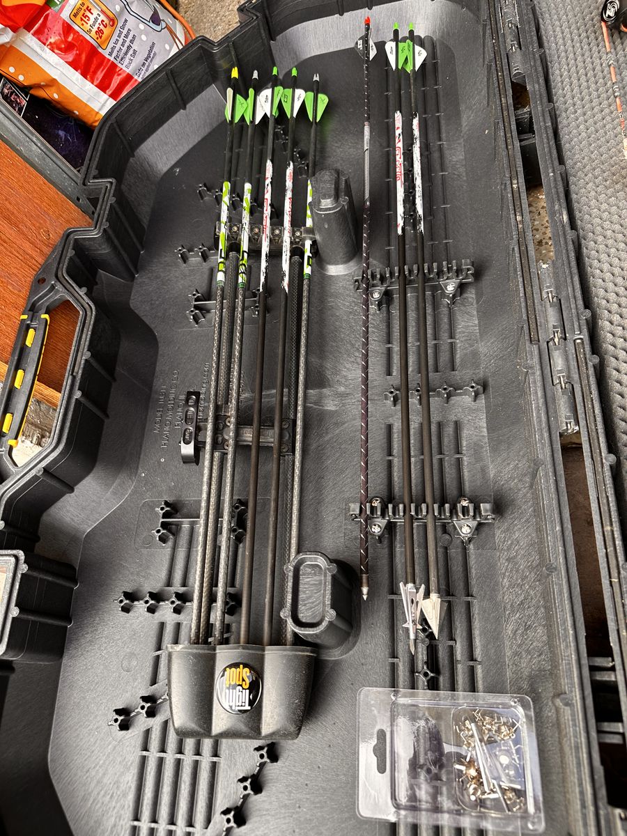 Comes with: Carbon Tight spot quiver Trophy ridge 5 pin sight Tru Ball Assassin Release 5 mechanical broadheads 3 fixed broadheads Field tips
