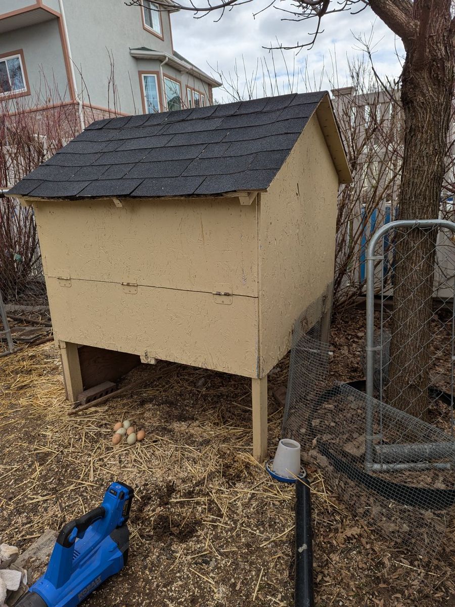 ZelleVery sturdy well build coop holds 6 to 8 chickens with four nesting boxes. Comes with fenced run with shader.