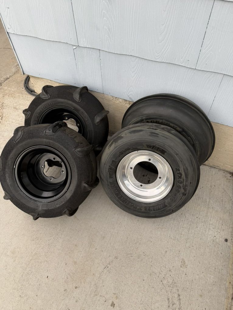 ApplePaySee photos for sizes Great shape used 3 times ITP and Dougles wheels For Yamaha Raptor Yfz Banshee Warrior