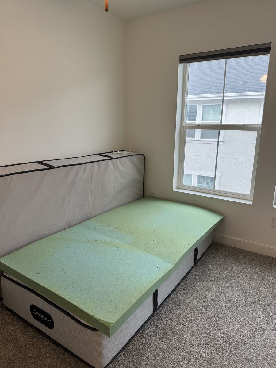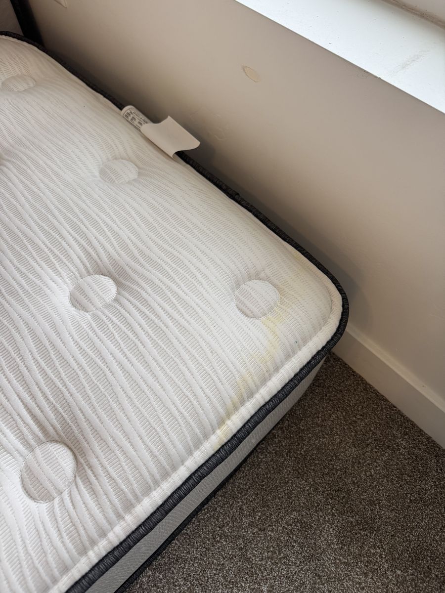 ZelleSmall stain on the edge, comes with memory foam topper.
