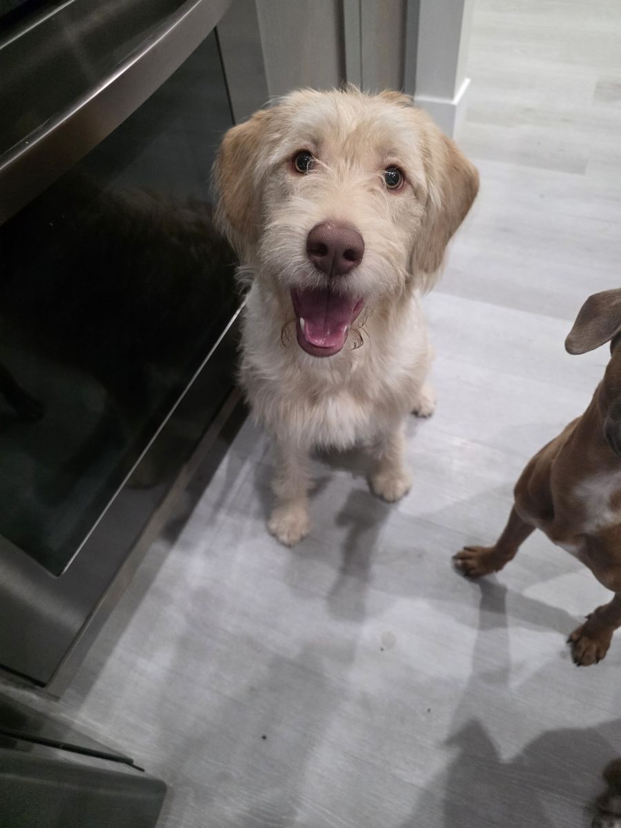 Birdie’s dad is a black Labradoodle and her mom is a white Lab. She definitely favors her mama’s look but still carries those fun, doodle traits! She’s the perfect mix of playful, affectionate, and eager to please.