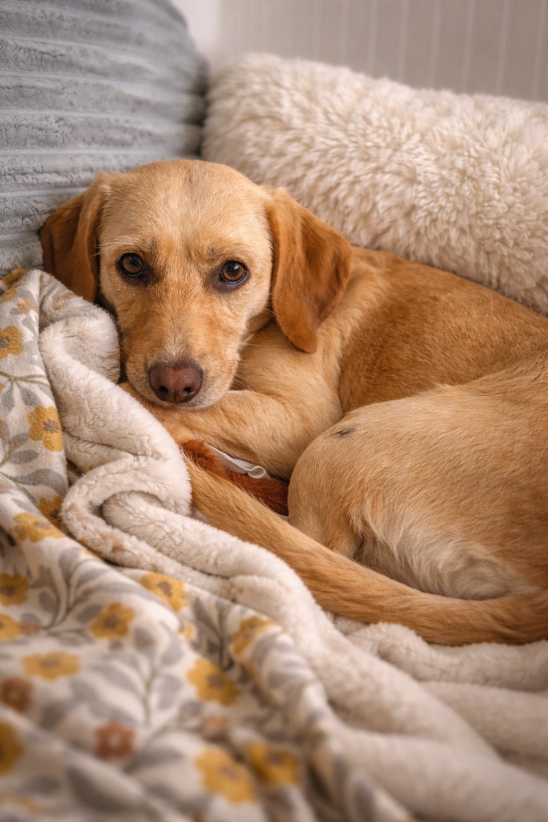 Many of you remember Mabel’s journey. She was an owner surrender who came into rescue absolutely terrified. After escaping her foster three times, she was missing for 3½ long weeks before our incredible trapper was able to safely catch her using her favorite Del Taco grilled chicken. It was a stressful chapter, but it showed just how resilient this girl is.