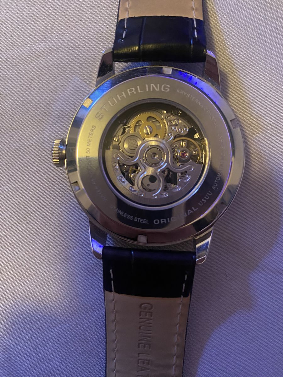 CashAppUsed watch, but is in good condition. Genuine calf skin leather strap with real golden internals. Retails new for $1000. Also comes with original box.