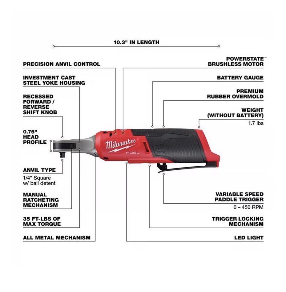 New Milwaukee M12 FUEL 1/4 in. Cordless Brushless High Speed Ratchet Tool Only