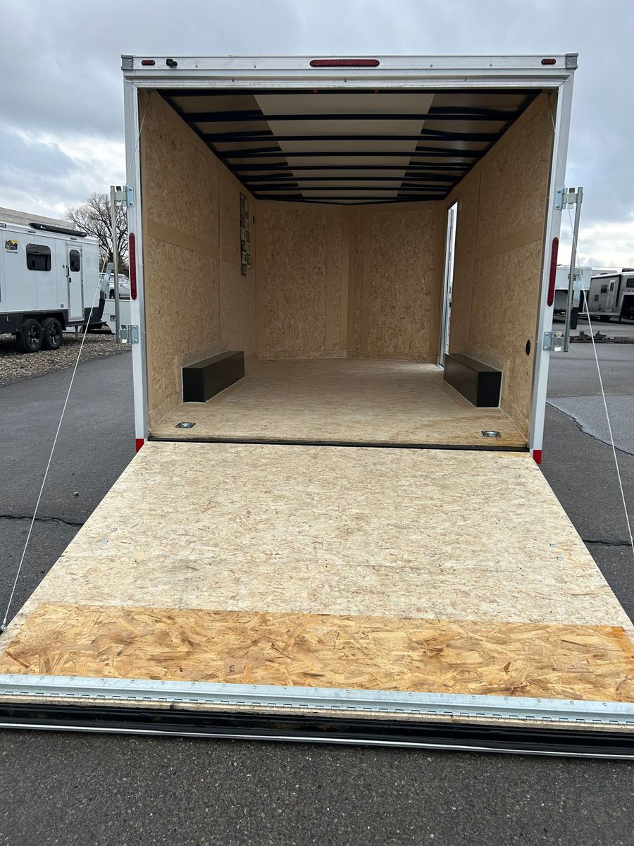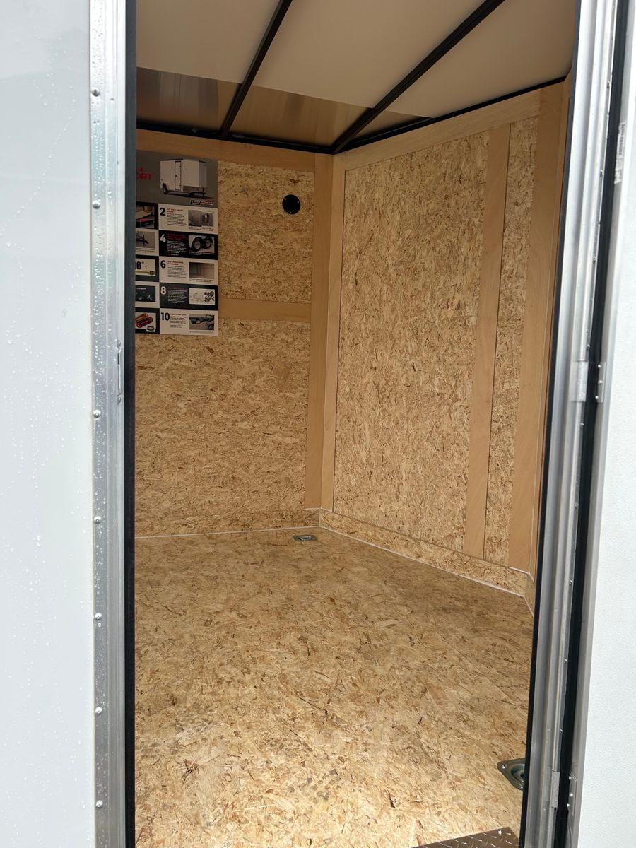 V-Nose Profile 12V Dome Light (1) 24" Starbright Stoneguard SIdewall Vents Floor Mounted D-Rings (4) Top Wind Jack with Sand Pad Safety Chains Entire Chassis Undercoated Smooth Aluminum Flare Fenders LED Exterior Lighting (Clearance Lights & Brake Lights) 5.2mm Lauan Interior Sidewall Liner 16" OC Vertical Posts 24" OC Floor Crossmembers 24" OC Roof Bows