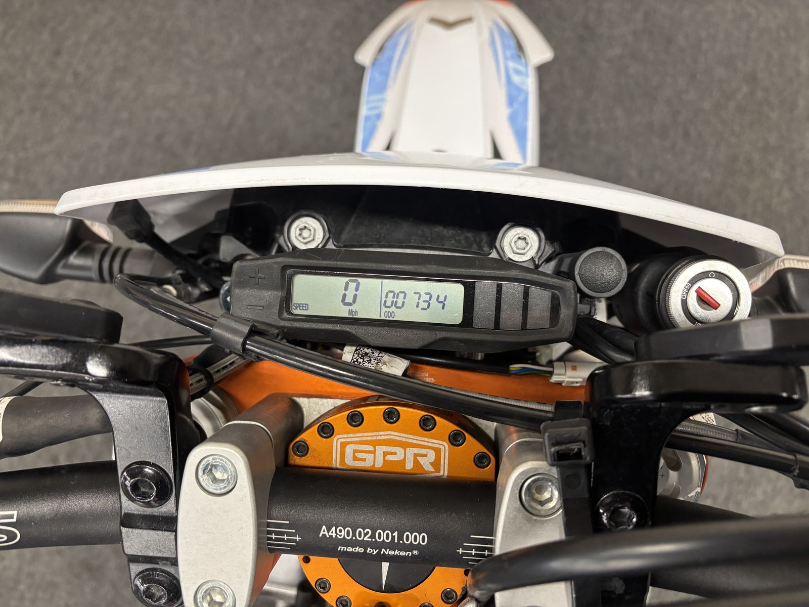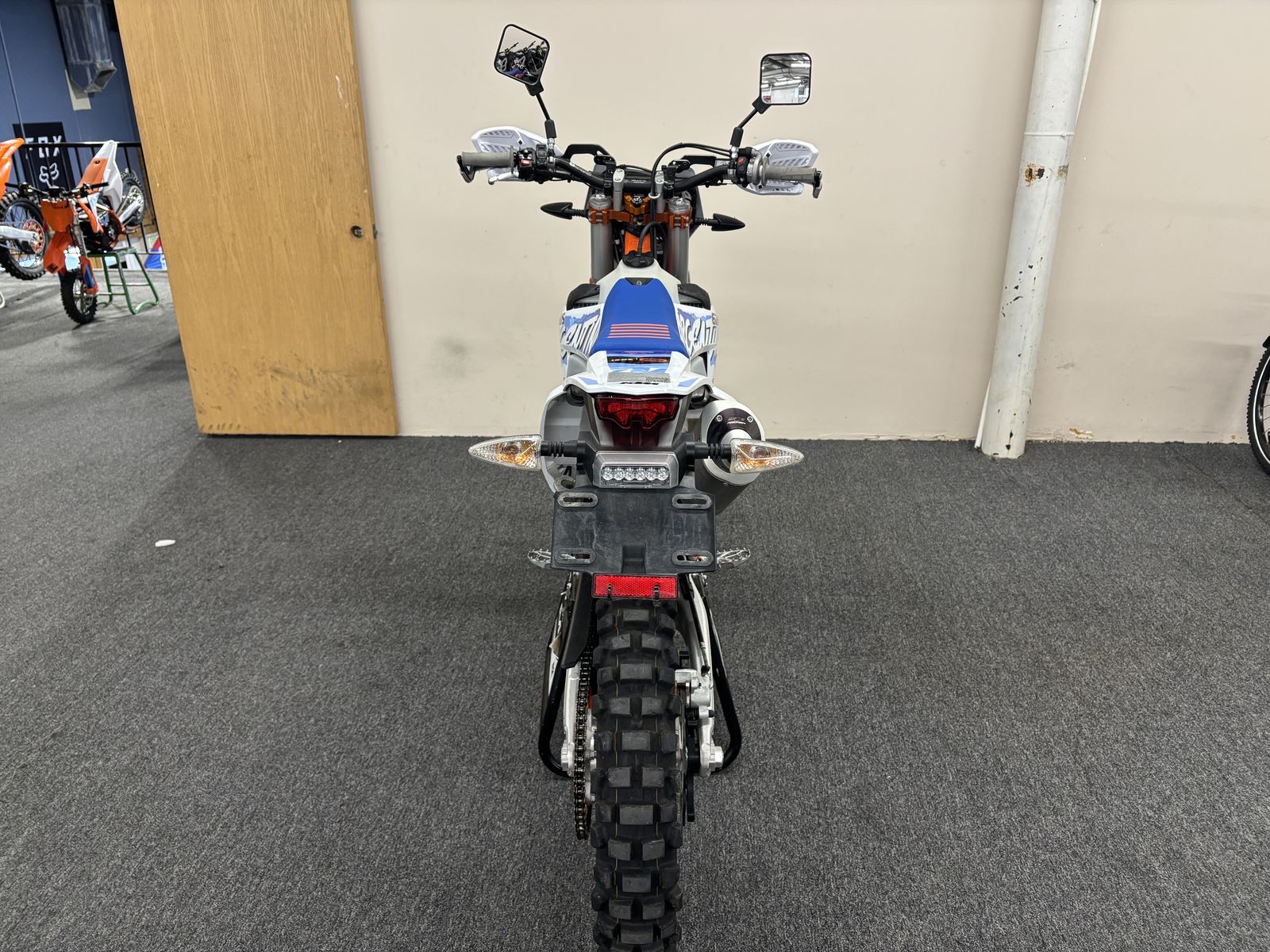 The illustrated vehicle may vary in selected details from the production models and some illustrations feature optional equipment available at additional cost. Manufacturer Suggested Retail Price (MSRP) does not include Pre-delivery Inspection (PDI), titles, licensing, registration fees, destination charges, added accessories and installation thereof. Engine Type: Single-Cylinder Displacement: 31.2 cu. in. (510.9 cc) Bore and Stroke: Bore: 3.74 in. (95 mm); Stroke: 2.83 in. (72 mm) Cooling: Liquid Compression Ratio: 12.8:1 Fuel System: Gas Front Suspension: Inverted Fork Front Brakes: Hydraulic Disc Front Tire: Continental TKC 80 90/90 R21 54M Rear Suspension: Twin Sided Swing Arm Rear Brakes: Hydraulic Disc Rear Tire: Continental TKC 80 120/90 R18 65R Fuel Capacity: 2.3 gal. (8.5 L) Wheelbase: 58.3 in. (1482 mm) Ground Clearance: 14 in. (355 mm) Seat Height: 37.8 in. (960 mm) Transmission: Manual Final Drive: 3.57