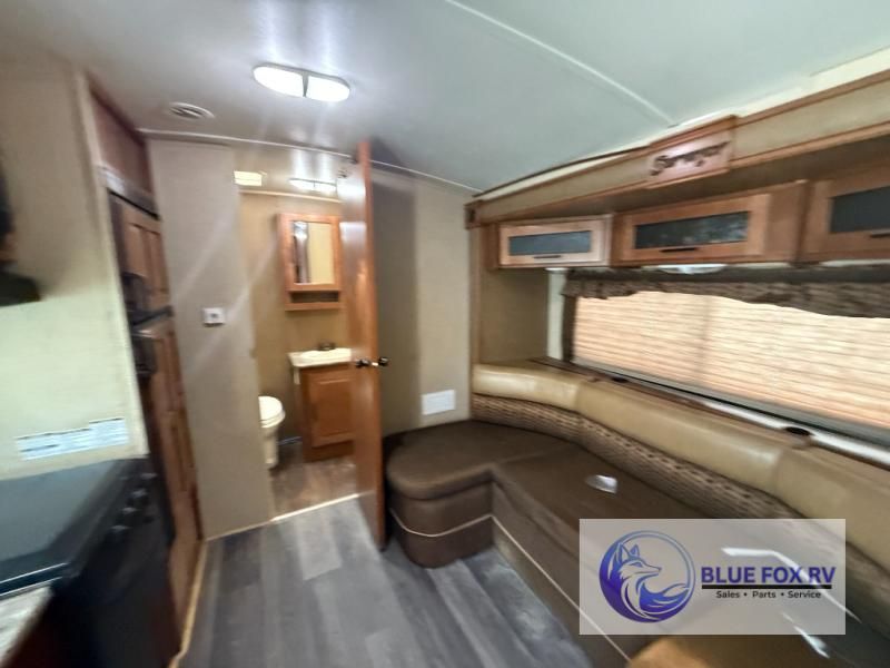 The Surveyor Sport SP-220RBS travel trailer offers a single slide and a rear bathroom.