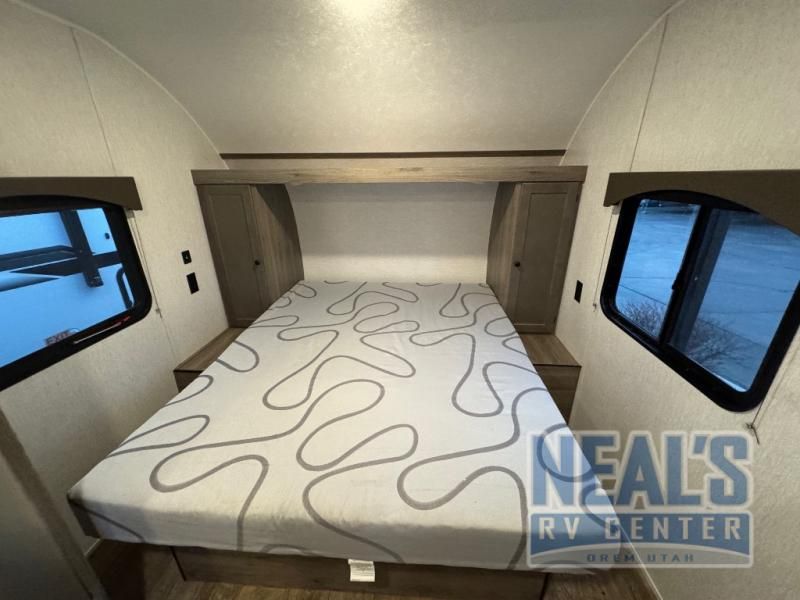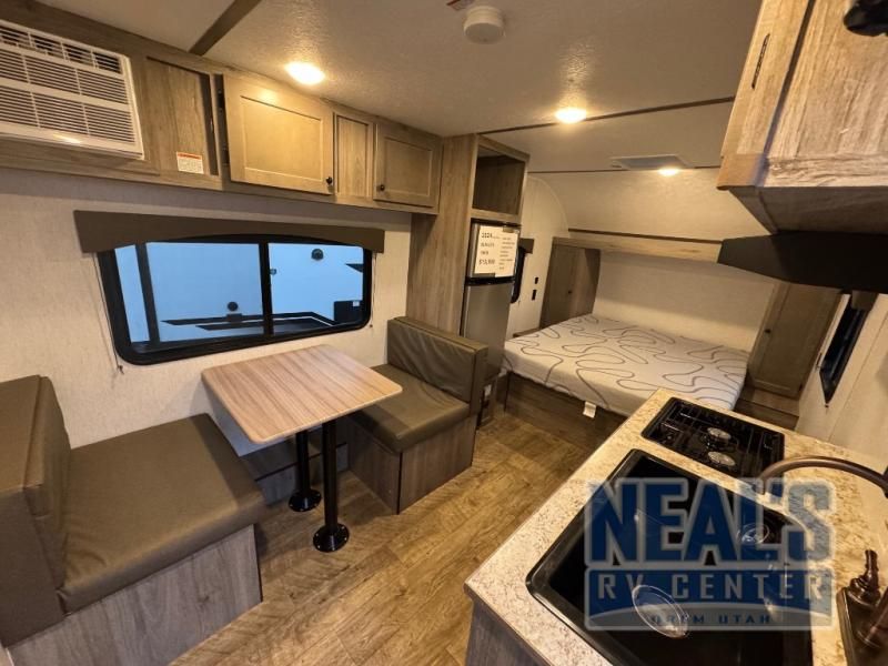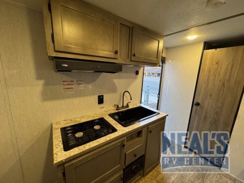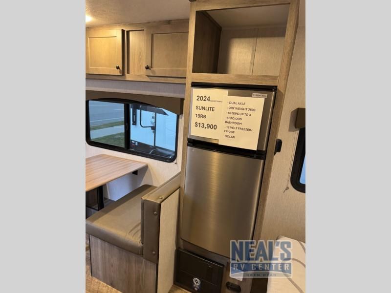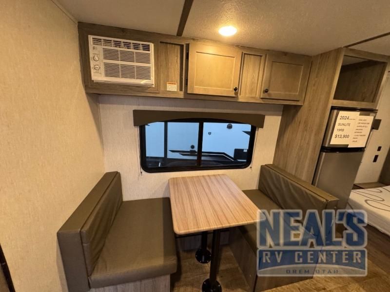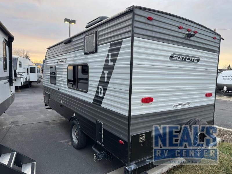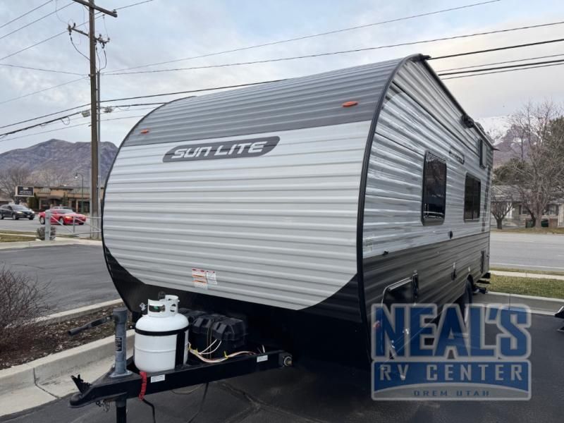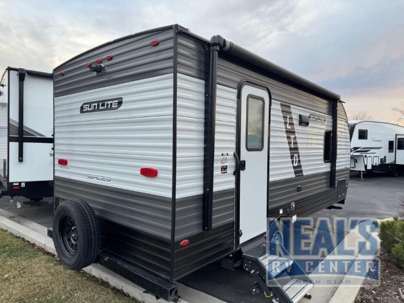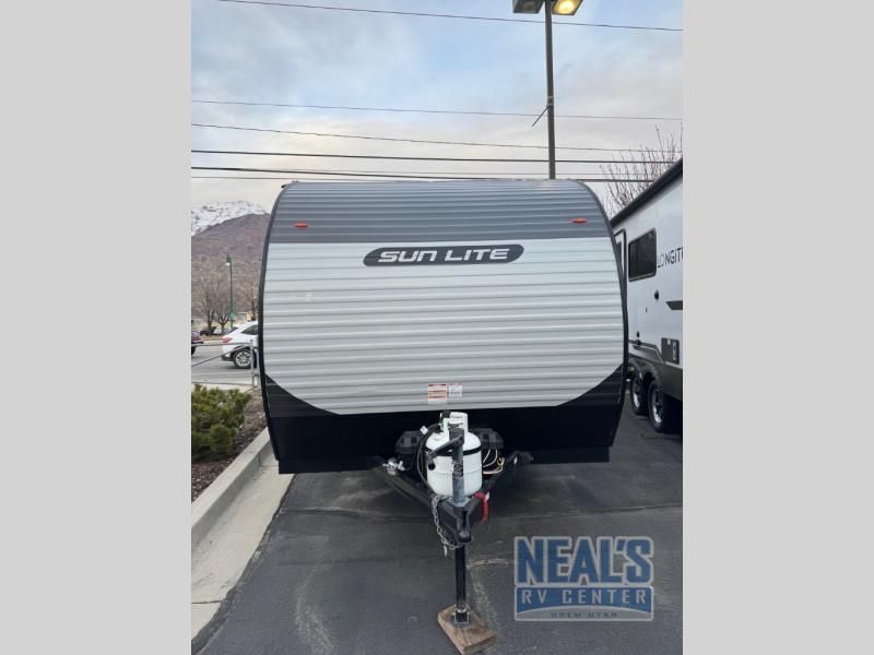 The perfect couple's trailer is waiting for you with this Sun Lite LTD! The front RV queen bed will provide a great night's rest after a day of hiking outdoors, and the full rear bath will let you clean up each day. There is a booth dinette where you can dine at each day, and even let another guest sleep over if needed. You'll also find a two burner stove to make meals, a double sink to clean up, and a 4.3 cu. ft. 12V refrigerator for leftovers! What's not to love about this travel trailer?!