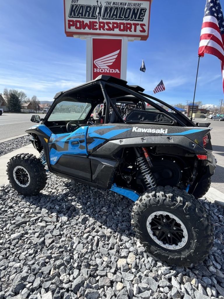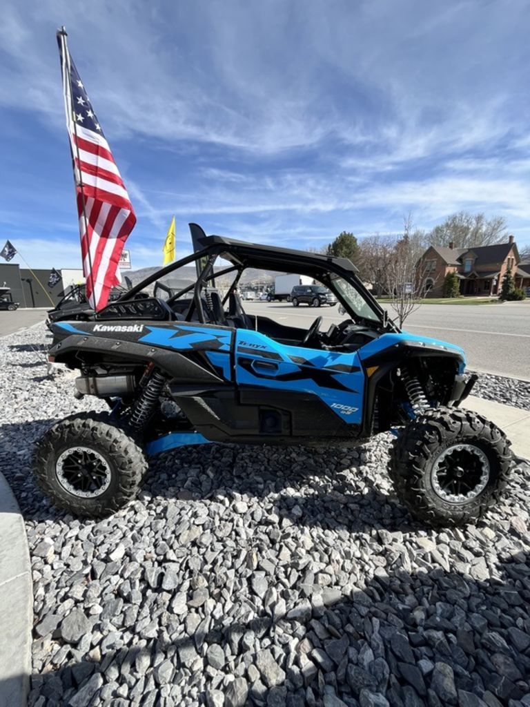 2026 Kawasaki Teryx Krx® 1000 eS NEXT-LEVEL KAWASAKI ELECTRONIC CONTROL SUSPENSION Features may include: Economical Riding Indicator Using high-precision electronic control for engine management, Kawasaki models can achieve a high level of fuel efficiency. However, fuel consumption is greatly affected by throttle use, gear selection, and other elements under the rider's control. The Economical Riding Indicator is a function that indicates when current riding conditions are consuming a low amount of fuel. The system continuously monitors fuel consumption, regardless of vehicle speed, engine speed, throttle position and other riding conditions. When fuel consumption is low for a given speed (i.e. fuel efficiency is high), an "ECO" mark appears on the instrument panel's LCD screen. By riding so that the "ECO" mark remains on, fuel consumption can be reduced. Electronic Throttle Valves Kawasaki’s fully electronic throttle actuation system enables the ECU to control the volume of both the fuel (via fuel injectors) and the air (via throttle valves) delivered to the engine. Ideal fuel injection and throttle valve position results in smooth, natural engine response and the ideal engine output. The system also makes a significant contribution to reduced emissions. Power Modes Models equipped with multiple Power Modes offer riders an easily selectable choice of engine power delivery to suit riding conditions or preference. In addition to Full Power mode, one (Low) or two (Middle, Low) alternate mode(s) in which maximum power is limited and throttle response is milder are provided. RIDEOLOGY THE APP POWERSPORTS RIDEOLOGY THE APP POWERSPORTS allows users to connect with their machines and with each other for a new and fun kind of interaction not previously possible. The new app has been developed for off-road 4-wheelers and PWCs. By enabling a connection between users’ smartphones and their vehicles, it makes time spent with their vehicles more fun. The app’s user interface is designed to be straightforward and easy to use. Vehicle Information and Trip Logs can be managed through the app. Before the ride, users can use the app to check vehicle information to make sure the vehicle is ready to go. Once the ride is done, users can relive their excursions via Trip Logs, share them with friends, and find new friends who share their interests and/or frequent the same places, making riding more fun than ever before. With RIDEOLOGY THE APP POWERSPORTS, users can expand their horizons, reach out and connect with friends existing and new, and through new features aimed at having fun, they can enjoy their powersports lifestyle on an even wider scale. While RIDEOLOGY THE APP POWERSPORTS needs to be ON (running in the background) to be connected to the vehicle, it was not intended to be operated while on board. User interaction with the app should be limited to when the vehicle is not being operated and it is safe to do so. ERGO-FIT® SIDE X SIDE Proper fit is key for driver comfort and control. However, the ideal fit varies from driver to driver, depending on their physical dimensions and driving style. ERGO-FIT® is an interface system designed to allow drivers to find their ideal driving position. Various points of the vehicle chassis can be adjusted through parts with adjustable positions. This enables a wide range of drivers to find a driving position that offers both comfort and control. Feeling at one with their machine, they will be able to experience how Kawasaki machines are fun and rewarding to drive.