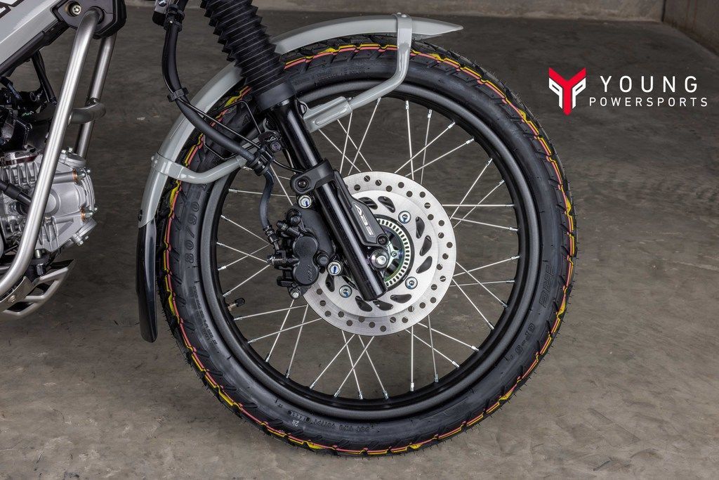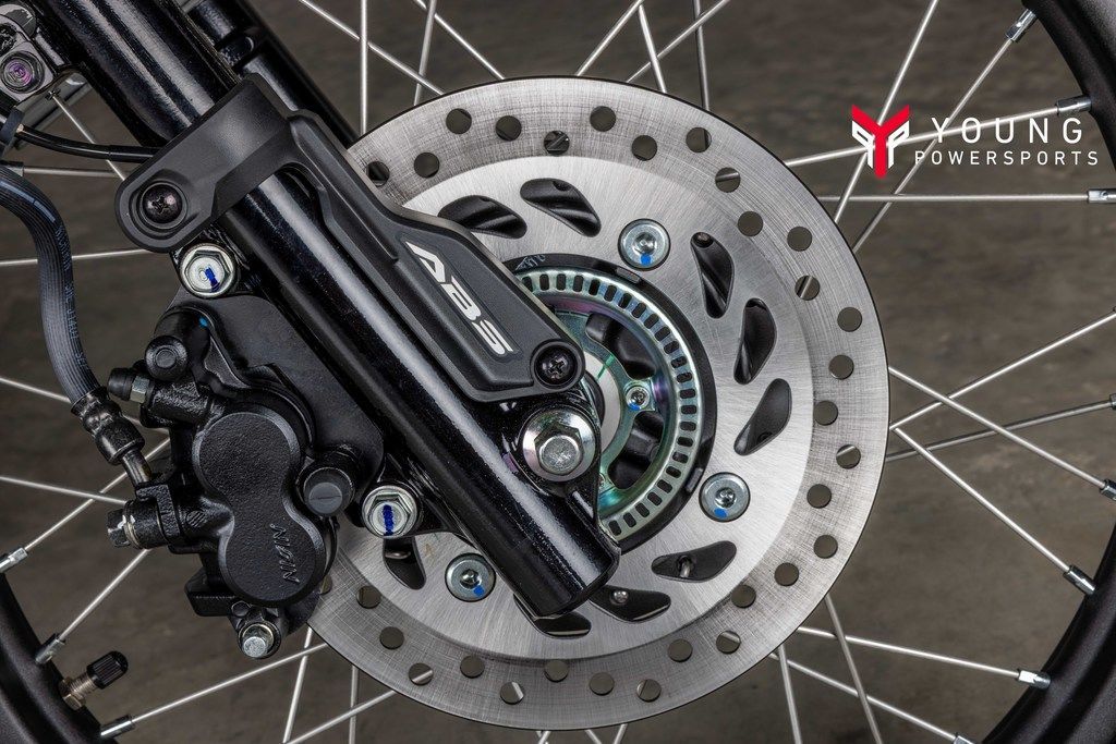 Single-disc brakes – 220mm front and 190mm rear – combine for excellent stopping power. And the increased safety of standard front-wheel ABS gives riders added confidence.