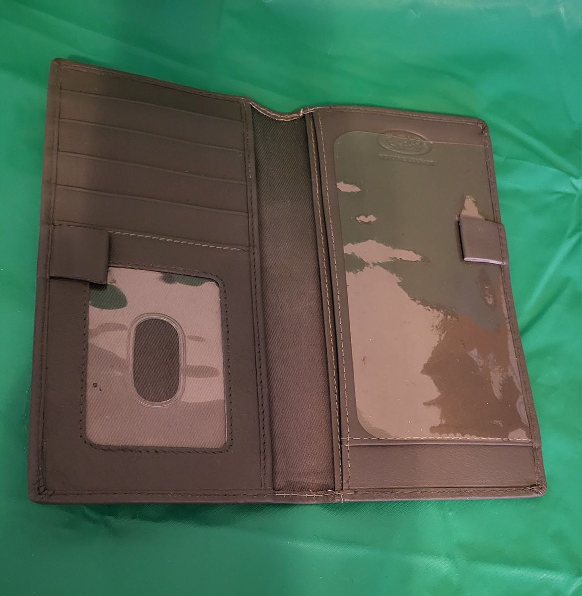 123 Cheap Checks brand ~ RFID safe ~ genuine leather ~ several pockets ~ checkbook flap ~ space for credit cards & ID ~ unisex ~ new, never used ~ see photos for more info & online ad price comparison (current retail is $19.00 at Walmart).