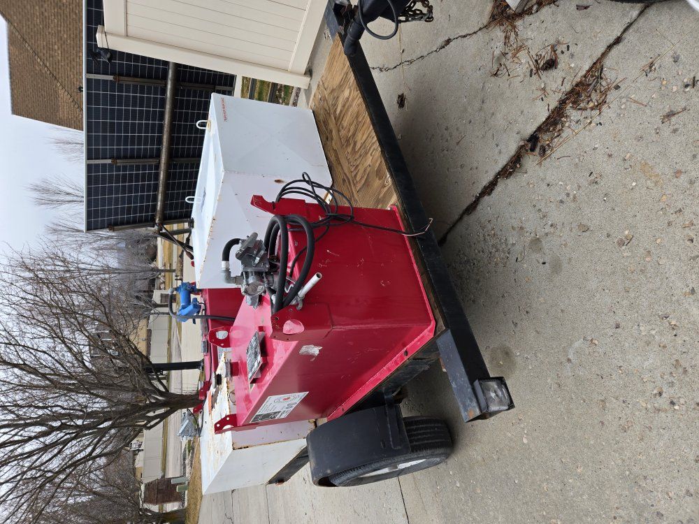 This trailer has 4 fuel cells mounted to it, on pressure treated plywood has a battery and 3 pumps Fuel cell sizes 79g, 96g, 52g, 100+g 2 5/16" ball Lights works 7 pin connection Price - $3000, or best offer, or make an offer