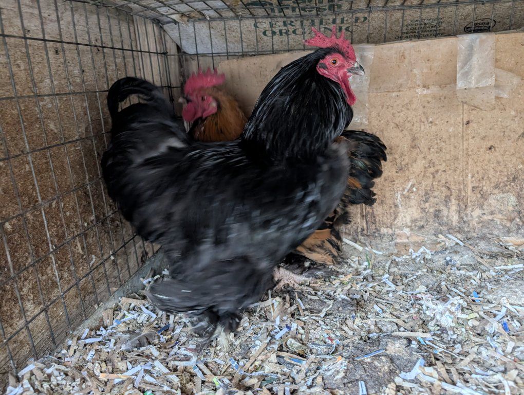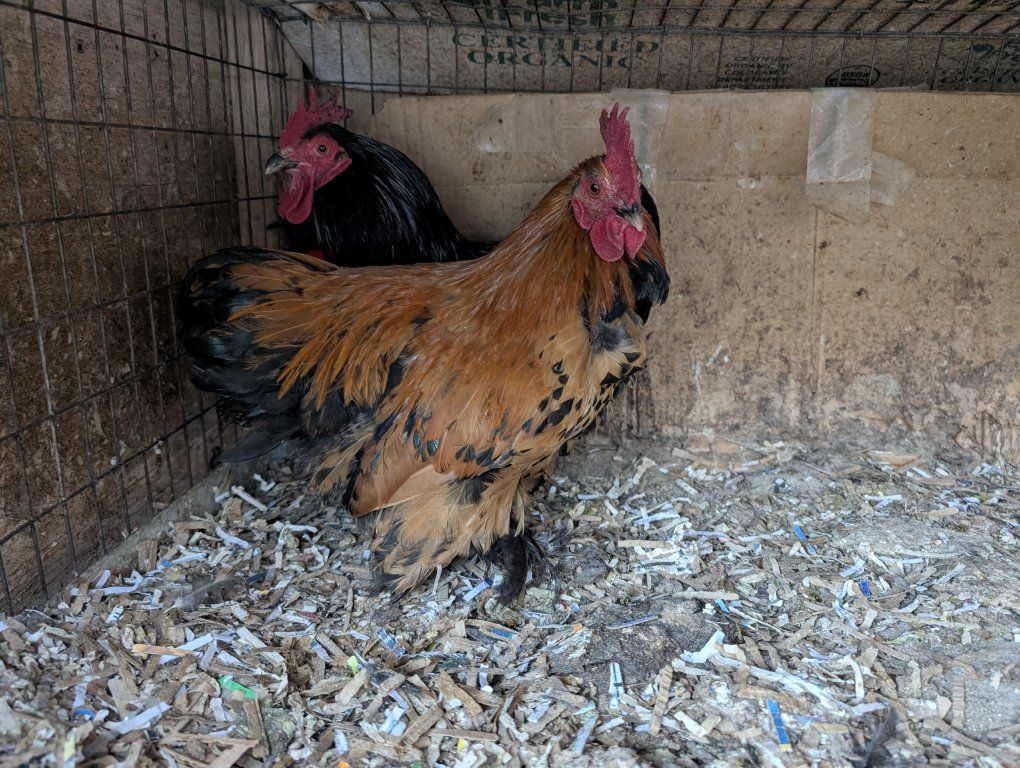 VenmoThese roosters hatched last Spring. They are very active and protective of hens. Perfect birds for your flock. I have two of them. $5 per chicken.