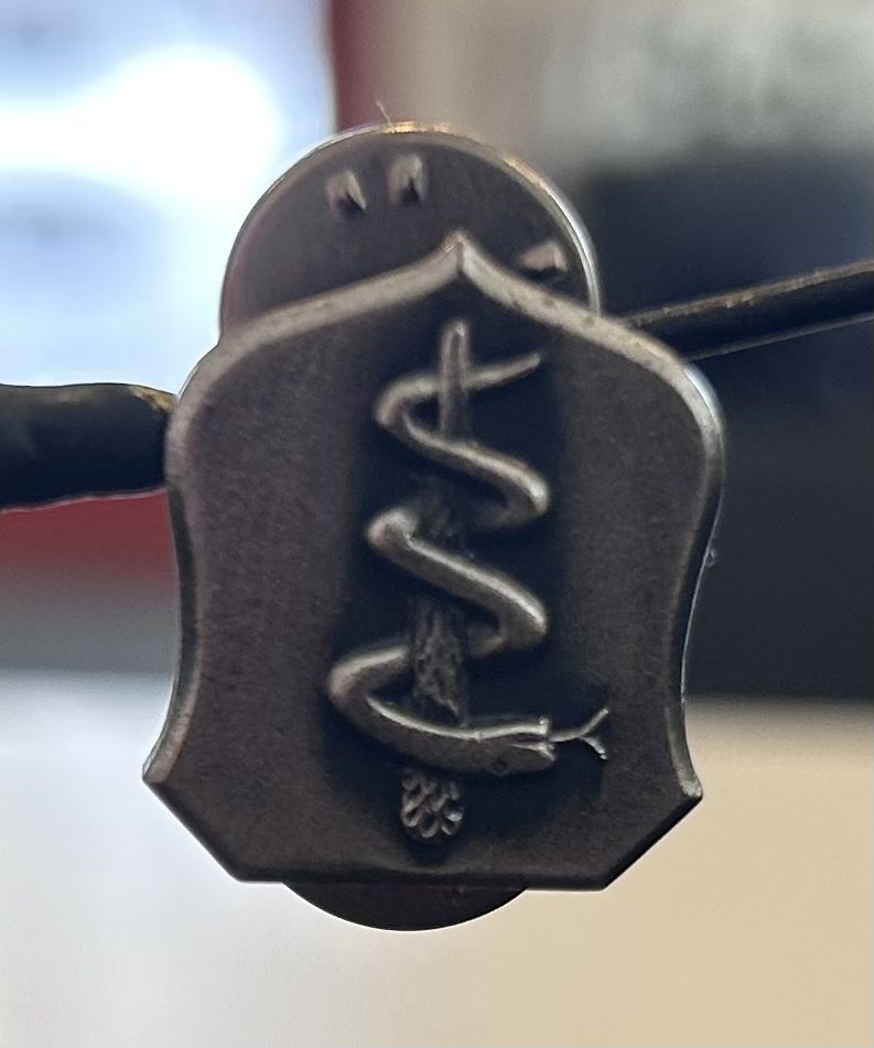 It is a silver-filled or sterling badge used to indicate qualification in medical specialties like physicians or nurses.