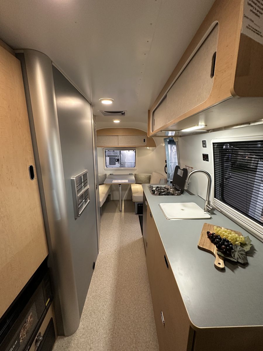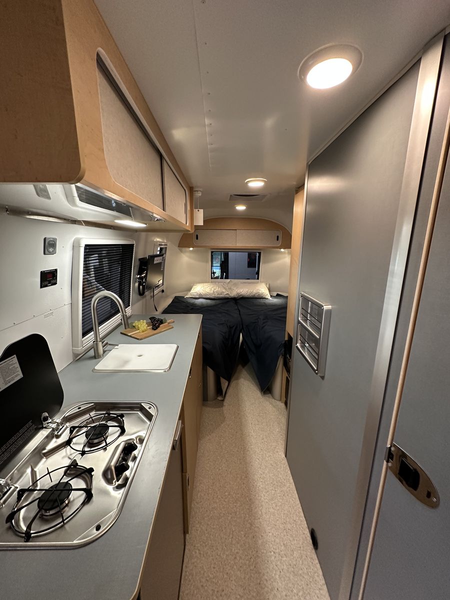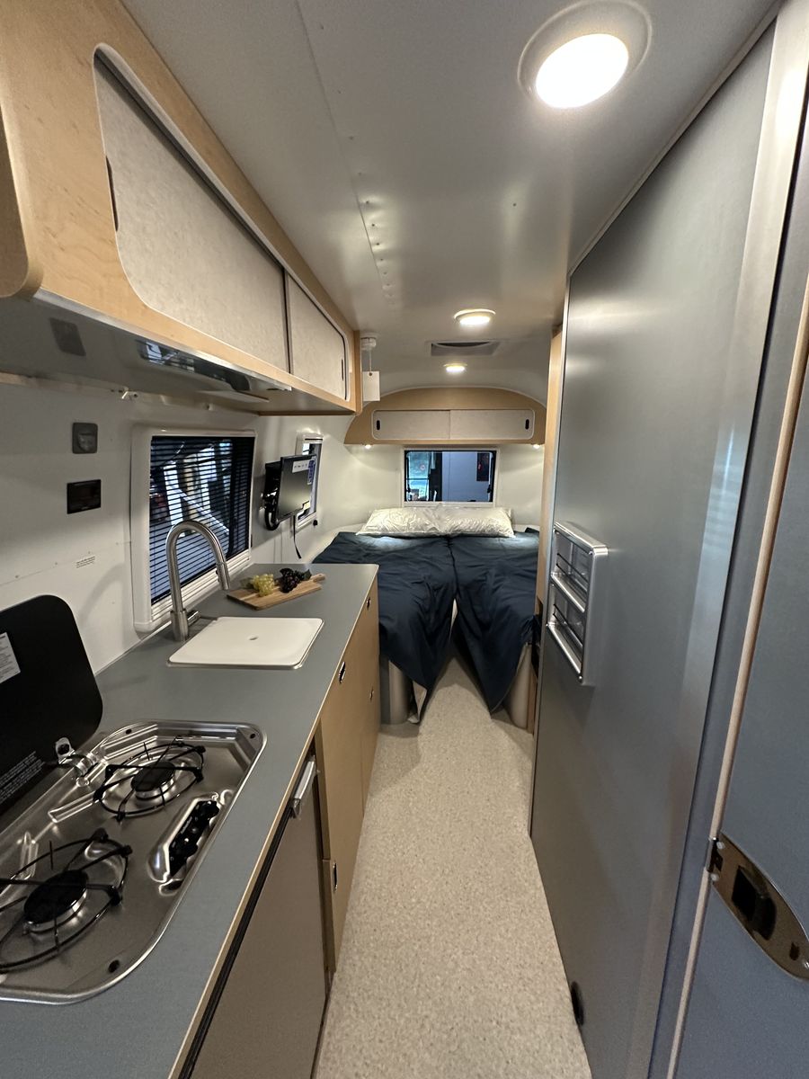 The 2026 Airstream World Traveler 22RB is a new, 22-foot lightweight travel trailer (dry) designed for maneuverability, featuring a narrow 7.5-foot width and a Scandinavian-inspired interior. It comfortably sleeps up to four people with a rear V-shape twin bed layout and a convertible front dinette, making it ideal for, first-time buyers and, small SUV or crossover towing. Key Features and Specifications: Design: Features a, classic riveted aluminum exterior with, panoramic windows, optimized for, aerodynamic efficiency. Interior: Light-colored laminate cabinetry,, terrazzo-inspired vinyl flooring, and a, separate, enclosed, or "split" bathroom/shower configuration. Capacity & Weights: Sleeps 4; 4,500 lbs GVWR; ~3,700 lbs dry weight; ~450 lbs hitch weight. Dimensions: 21 ft 2 in total length; 7 ft 6 in exterior width; 6 ft 6 in interior headroom. Systems: Includes, 300W solar power option, 200Ah lithium batteries, and, heated tanks for all-season capability. Amenities: Features a, two-burner stove, refrigerator, and, efficient, "hidden" rooftop AC with heat pump. Airstream Airstream +8 This model serves as an entry-level,, European-inspired option in the Airstream lineup, balancing compact size with, modern amenities and durability.