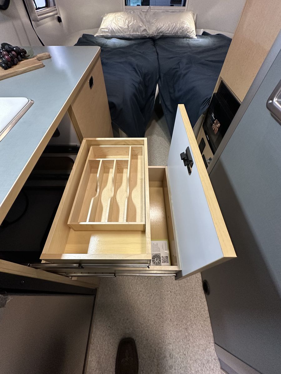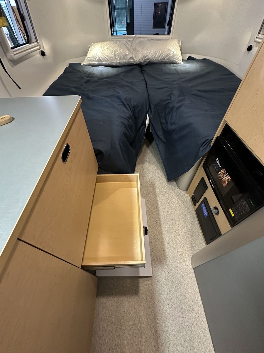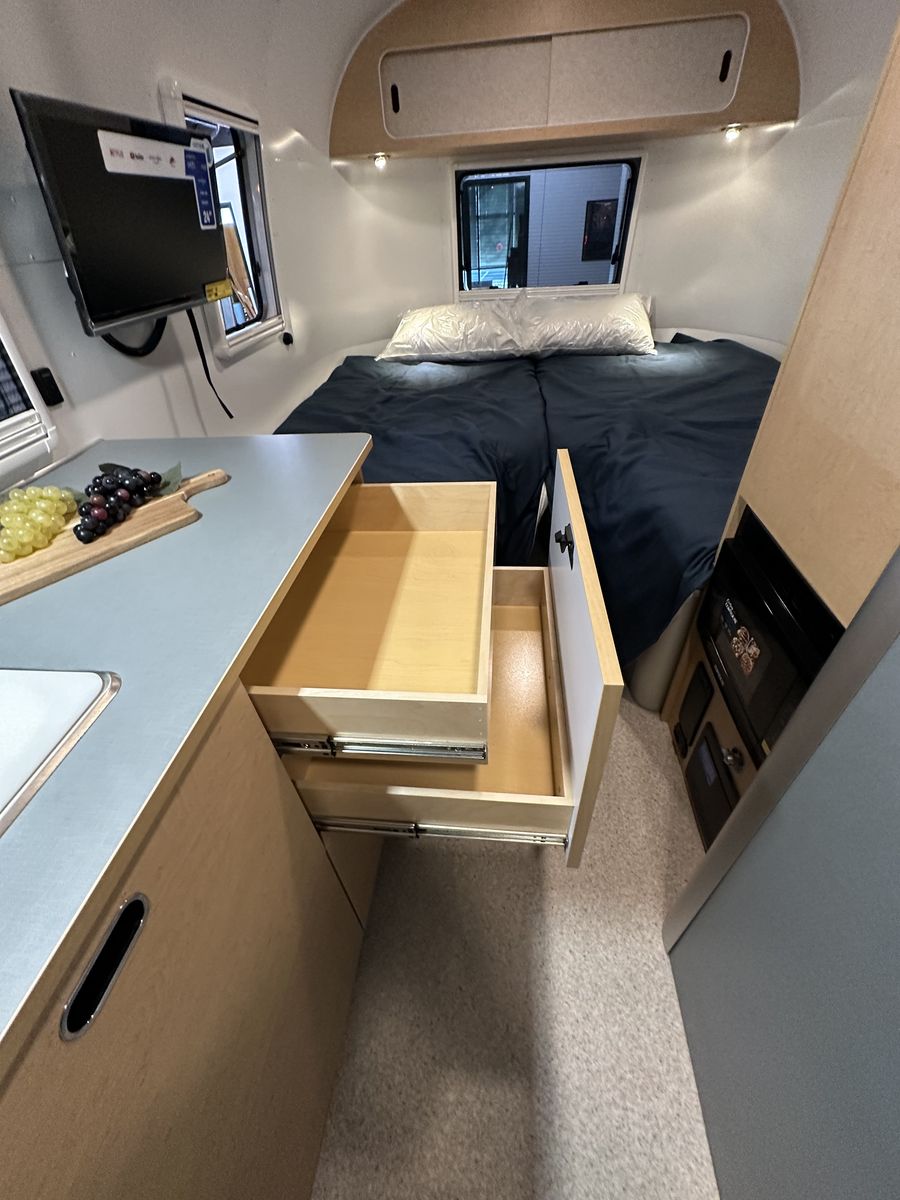 The 2026 Airstream World Traveler 22RB is a new, 22-foot lightweight travel trailer (dry) designed for maneuverability, featuring a narrow 7.5-foot width and a Scandinavian-inspired interior. It comfortably sleeps up to four people with a rear V-shape twin bed layout and a convertible front dinette, making it ideal for, first-time buyers and, small SUV or crossover towing. Key Features and Specifications: Design: Features a, classic riveted aluminum exterior with, panoramic windows, optimized for, aerodynamic efficiency. Interior: Light-colored laminate cabinetry,, terrazzo-inspired vinyl flooring, and a, separate, enclosed, or "split" bathroom/shower configuration. Capacity & Weights: Sleeps 4; 4,500 lbs GVWR; ~3,700 lbs dry weight; ~450 lbs hitch weight. Dimensions: 21 ft 2 in total length; 7 ft 6 in exterior width; 6 ft 6 in interior headroom. Systems: Includes, 300W solar power option, 200Ah lithium batteries, and, heated tanks for all-season capability. Amenities: Features a, two-burner stove, refrigerator, and, efficient, "hidden" rooftop AC with heat pump. Airstream Airstream +8 This model serves as an entry-level,, European-inspired option in the Airstream lineup, balancing compact size with, modern amenities and durability.