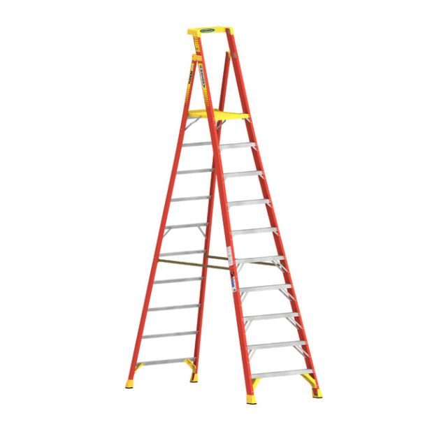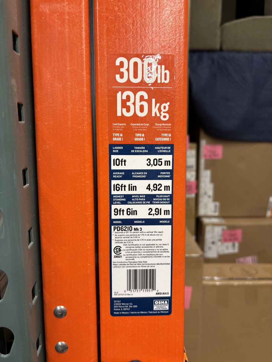Werner brand 13’ tall 10’ high platform 16’ average reach height 300 lbs capacity