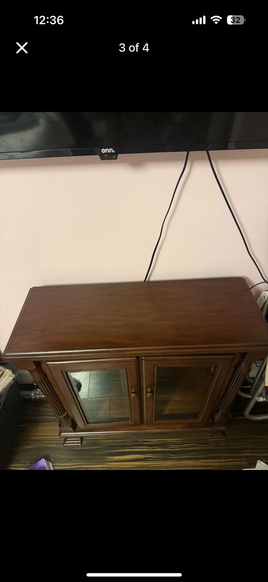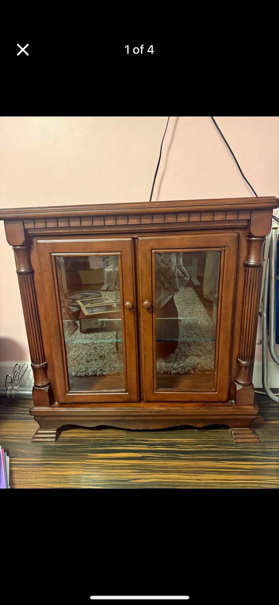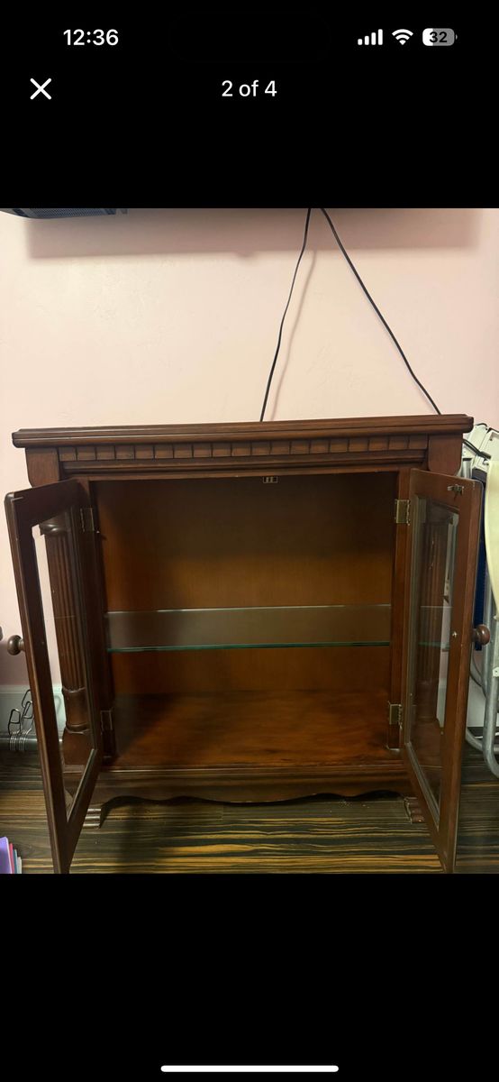 Venmo32” x 32” x 12” 2 glass shelves — removeable Light switch located inside