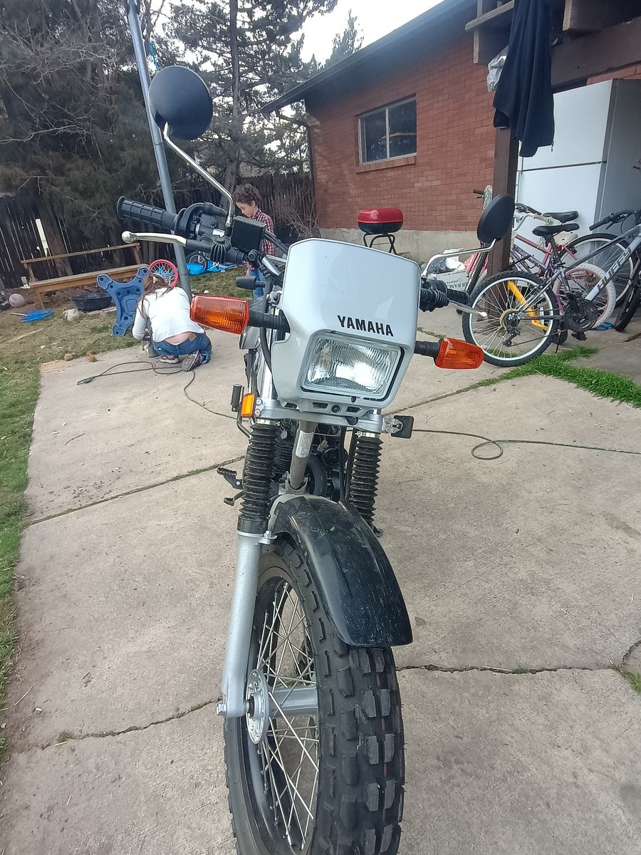 Yamaha 200 cc Enduro, street legal with lights. Super fun. Excellent gas mileage. Almost brand new. Classic retro look. Only 120 miles on it.