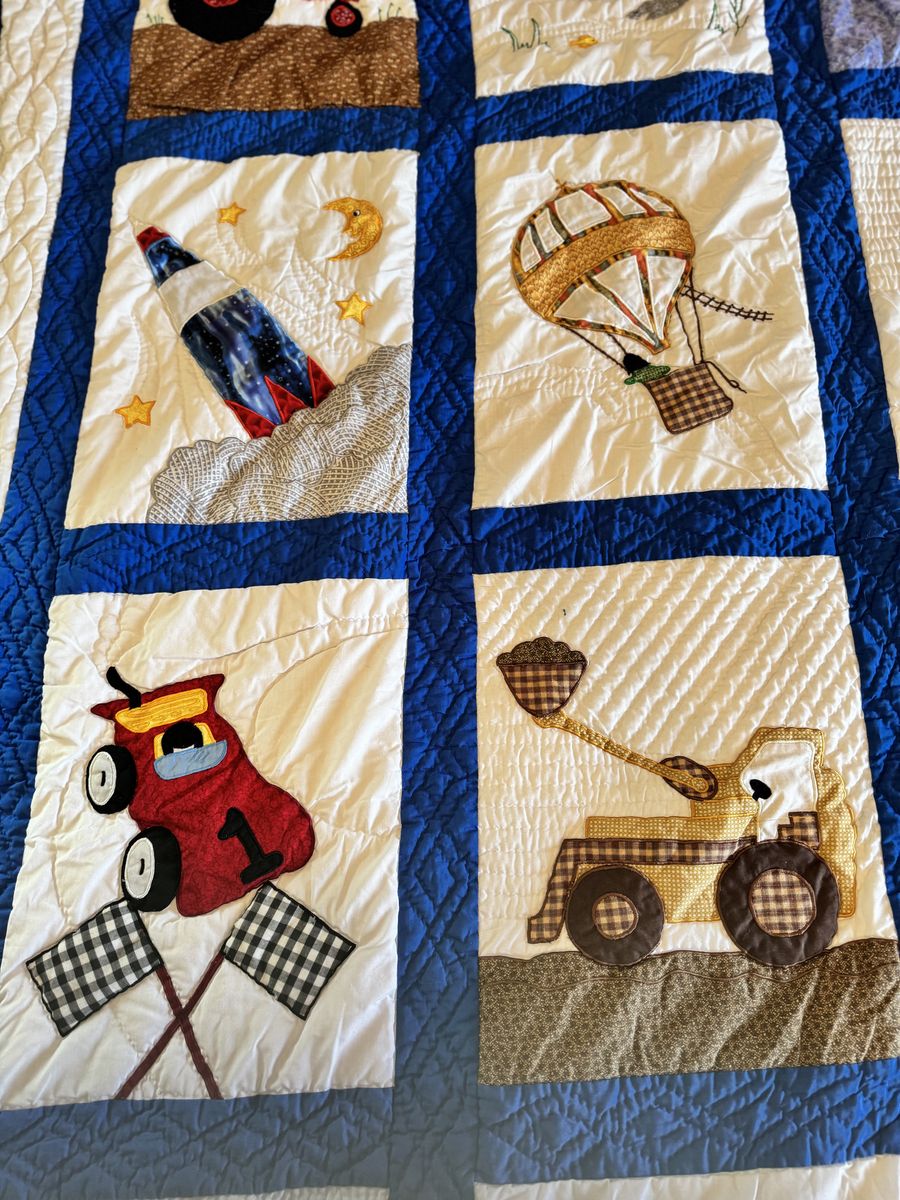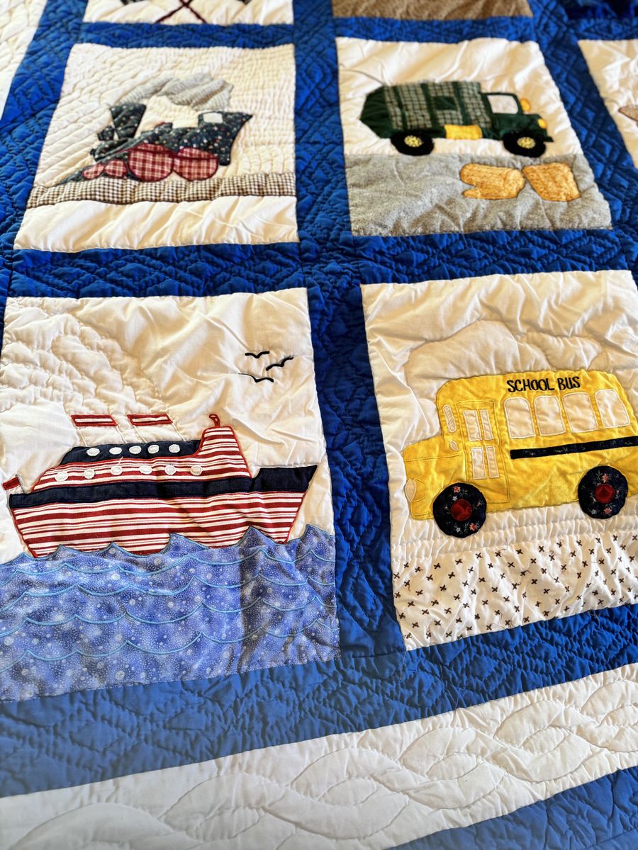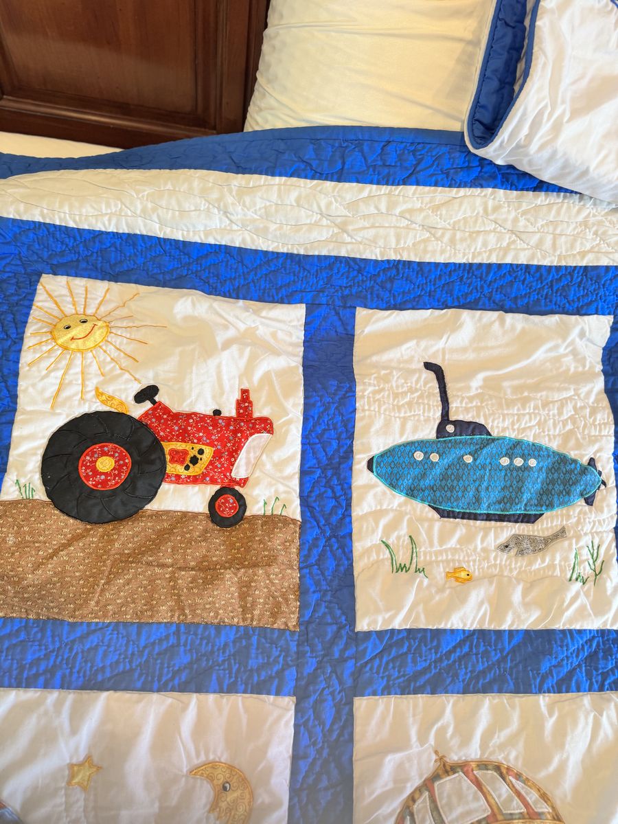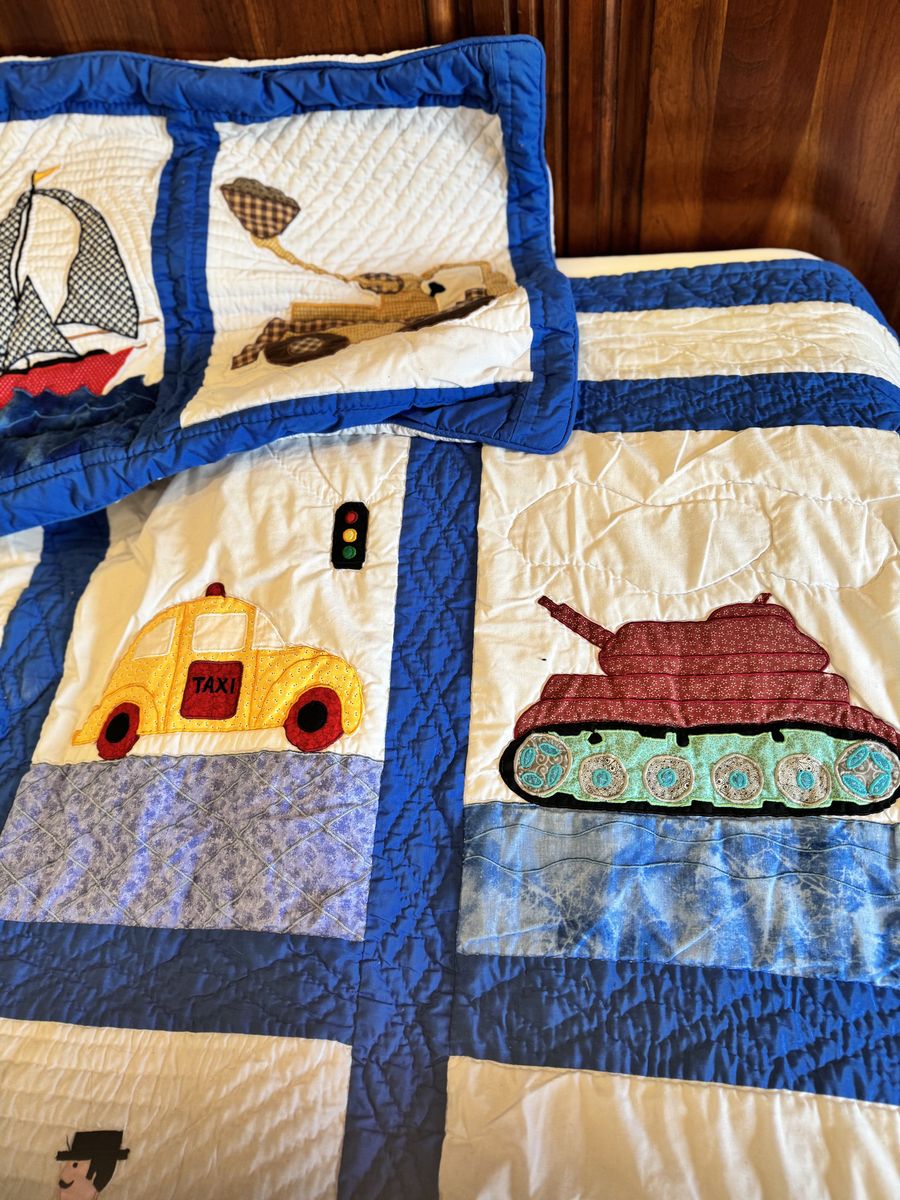 VenmoAdorable twin size quilt comes with one standard sham. This quilt was hand stitched by a woman in the Philippines. It’s all handmade with tiny stitches. It’s a real treasure!️ It is over 22 years old and is in excellent condition.