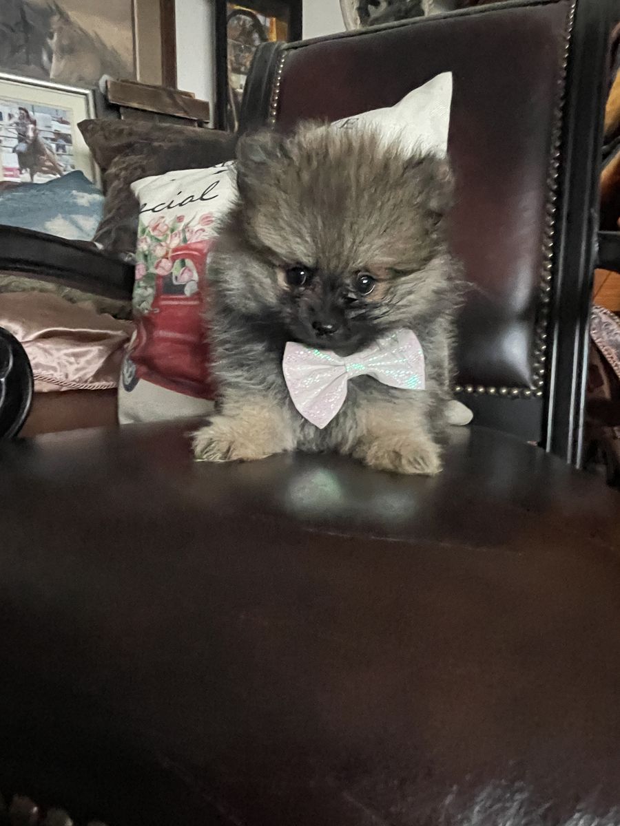 Teeny teacup Pomeranian sable tan male, first shot, started potty training $799. 3rd picture