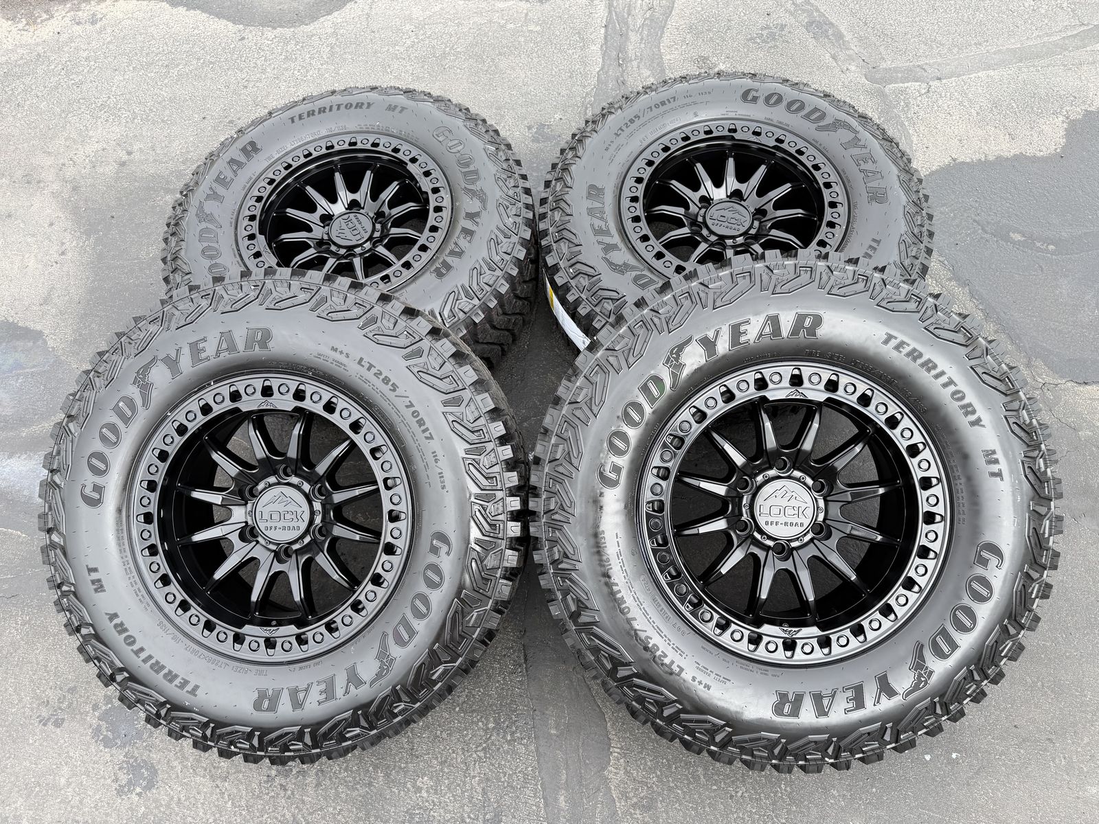 Wheels are 17” Lock Offroad 17x8.5 width +25 offset 6 lug 6x5.5 lug pattern