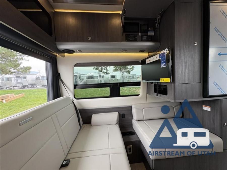 The 2026 Airstream Interstate 19 AWD AP (Advanced Power) is a 19-foot, luxurious Class B diesel motorhome on a Mercedes-Benz 2500 Sprinter AWD chassis. It features a 2.0L high-output diesel engine, a standard 10.3 kWh lithium battery system for off-grid power, and seats four, providing a high-tech, nimble, and luxurious travel experience Key Features and Upgrades for 2026: Performance & Drivetrain: All-Wheel Drive (AWD) ensures superior handling in various terrains, powered by a 2.0L 4-cylinder engine producing 208 HP and 332 lb-ft of torque. Advanced Power System (AP): Standard 10.3 kWh Lithium (LiFePO4) battery system with 600W of solar, allowing for extended, generator-free off-grid camping. Interior & Design: 19'5" length allows for parking in standard spots. Features include a rear power sofa/ottomans that convert into a large 66" x 72" bed, European-style wet bath, Ultraleather seating, and smart-controlled lighting. Technology: 3000W inverter, 2 burner induction cooktop, Truma Combi Eco Plus hot water heater, and a 3.2 cu. ft. refrigerator/freezer. Safety: Mercedes-Benz safety systems, including collision prevention, lane keeping assist, and a 360-degree camera system. We Are Airstream Superstore We Are Airstream Superstore +7 Specifications: Length: 19 ft. 5 in. GVWR: 9,050 lbs Towing Capacity: Up to 5,000 lbs Sleeping Capacity: 2 (Comfortably) Fresh Water/Gray Water/Black Water: 20 gal / 16 gal / 9 ga