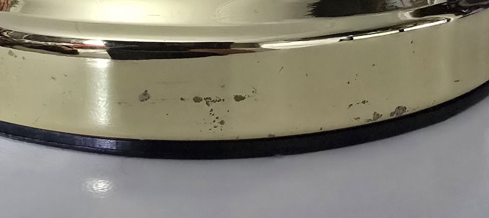 Great condition, no damage other than the tiny marks on the bottom gold base. No shades.
