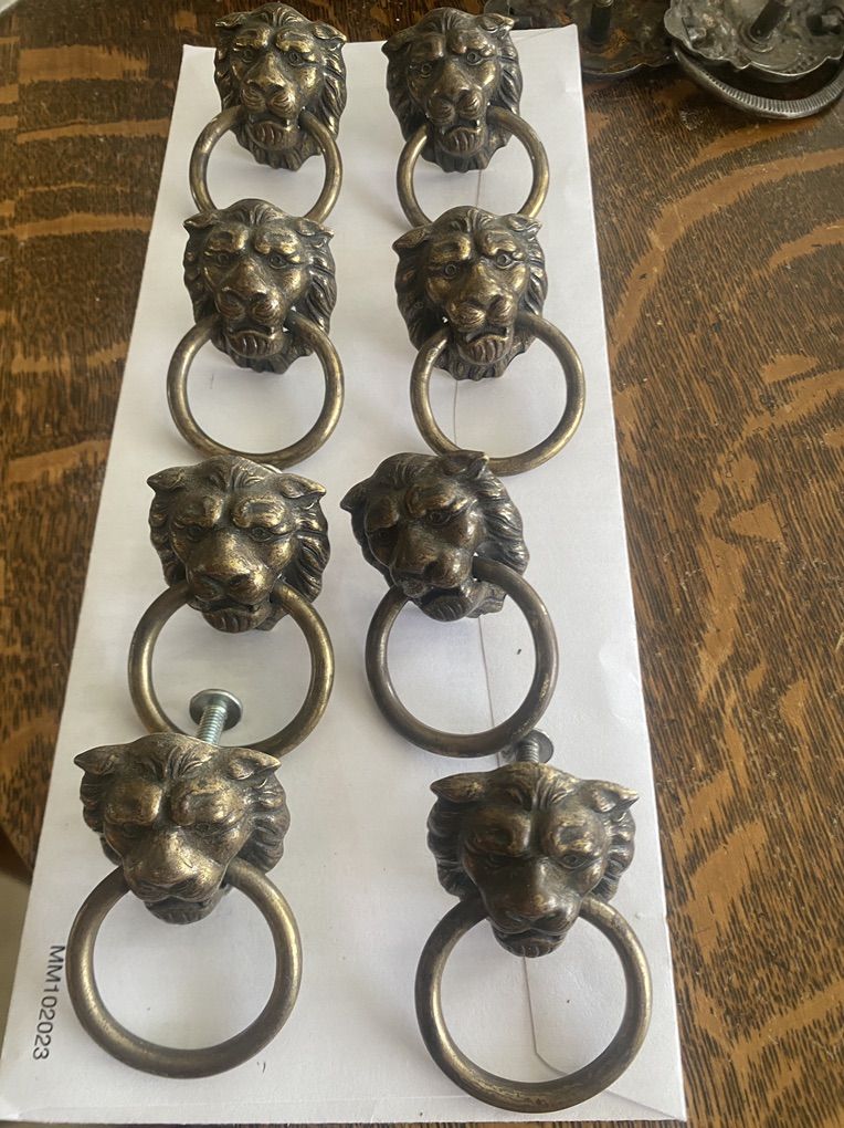 8 Antique/Vtg Amerock Brass Lion Head Ring Drawer Pulls No. 1- (hardware included)