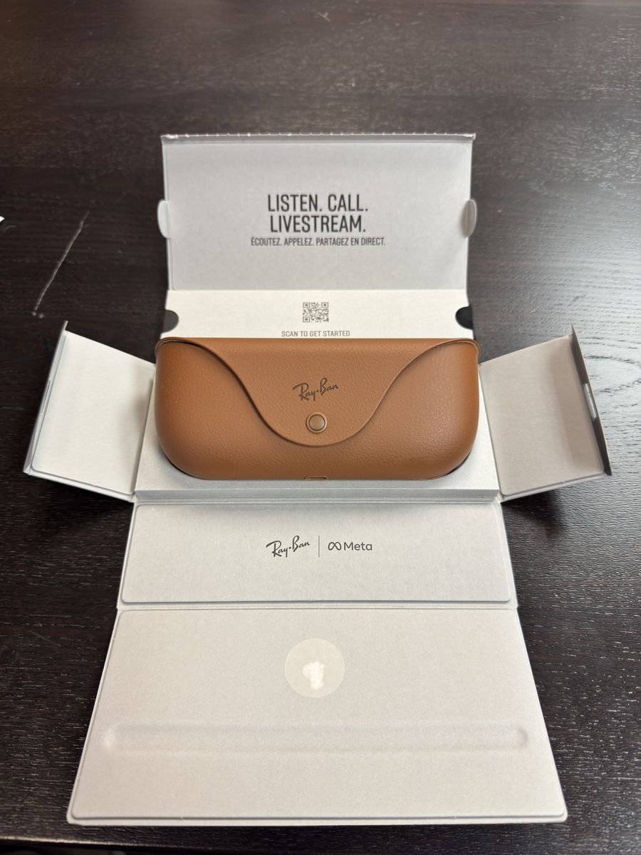 ZelleBrand new! Got them as a gift for my birthday and they don't fit my giant head. Box is open but everything is included, even original paperwork and cleaning cloth.