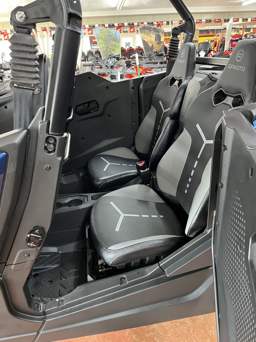 With four seats, you can bring the whole crew to enjoy the rides! With the 83 horse v twin paired to CFMOTO's CVTech transmission you can get ready to conquer anything in your path. Also equipped is a 4500lb winch, electronic power steering, 7 position adjustable shocks, aluminum wheels with 27 inch tires, 1500lbs towing capacity, storage for both the driver and passenger as well as a large rear cargo trunk, LED lighting, CFMOTO RideSync connectivity and more.