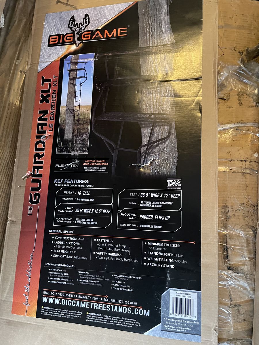 PayPalSelling a brand new, in-box Big Game Guardian XLT 2-Person Ladder Treestand.