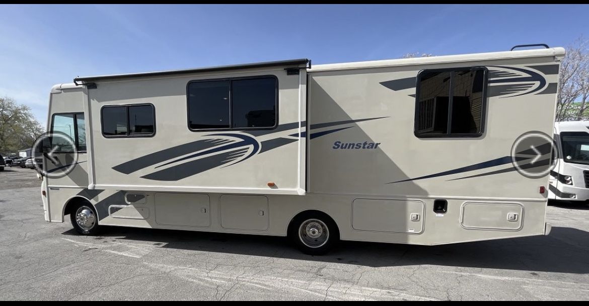 Venmo2017 Winnebago Sunstar 31KE Class A Motorhome. Priced for quick sale, below blue book. It’s 31 feet 6 inches in length and features one large slide and a 320HP Ford Triton V10 engine. This motorhome easily sleeps 7 and features an automatic leveling system, a 4KW Onan generator, a power awning, a large U-shaped dinette, slide-out awning topper, cruise control, power entry step, front power overhead bed, rear backup camera, 2 televisions, DVD player, CD player, water capacity of 64 gallons, Lots of storage, towing package, rear backup camera, power window blinds in the cab, heating, air conditioning, and more! Low miles of only 18,500. Must see to appreciate. Will include Blue Ox Tow System with a good offer, otherwise $700 extra if interested.